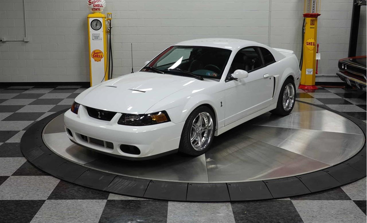 The car is fully equipped modern muscle style with power steering and tilt, 4-wheel power disc brakes with ABS, air, cruise, a killer Mach sound system that provides a great place to play your CDs, and remote keyless entry. Open the hood to see the glorious installation of a black Whipple blower complete with intercooler. The combination is good for a solid 390 horsepower. (In comparison, the Boss 429 was rated at 375.) The Special Vehicle Team put a lot of love into the handling department too. The SVT Handling Suspension includes linear rate springs, gas pressurized struts and shocks, and a fully independent rear suspension, something not seen in a Mustang until the SVT Cobra.