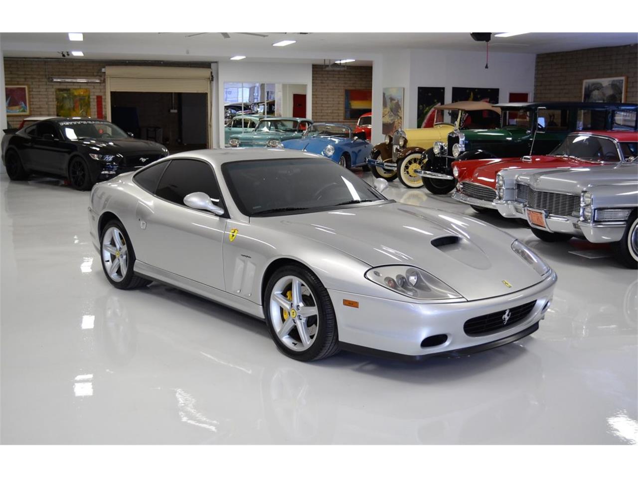 Ferrari 575M featuring the F1 style six speed gearbox and the Fiorano Handling Package and is in nearly showroom new condition. It has been recently serviced, including belts, and is ready to enjoy. Offered here is what is perhaps the ideal drivers Ferrari 575M Maranello. The livery is all original and finished in Gricio Titanio Silver. This is a classic color for the GT model Ferraris. The paint finish is nearly perfect.The paint is beautiful throughout. We love the contrasting yellow calipers that was a custom order with the factory. Inside, the interior is trimmed in Nero black leather and features the Daytona Ferrari sport seats and black carpets. The seats show almost no wear and are soft and supple. We also love the High Power HiFi with the Subwoofer.
