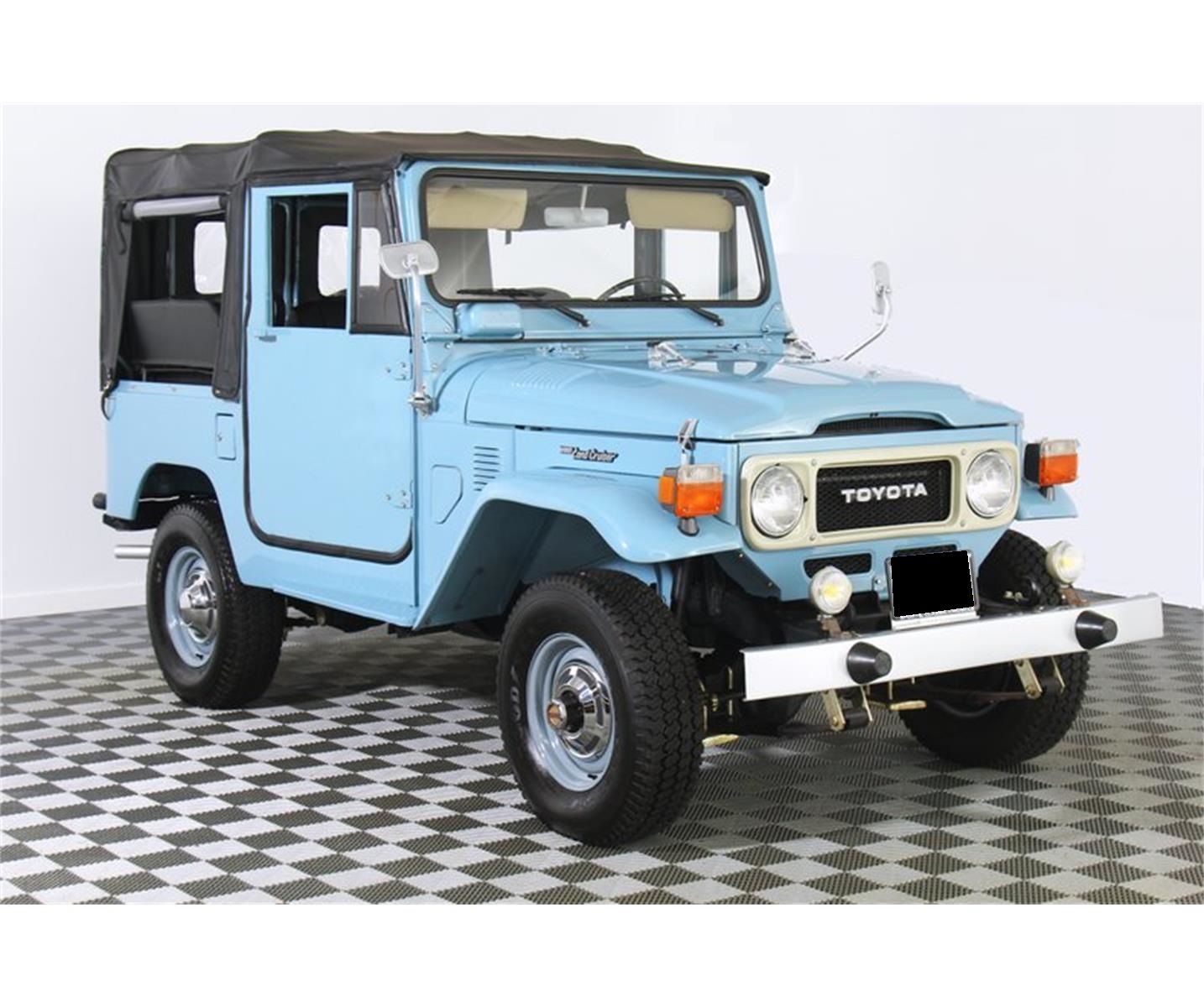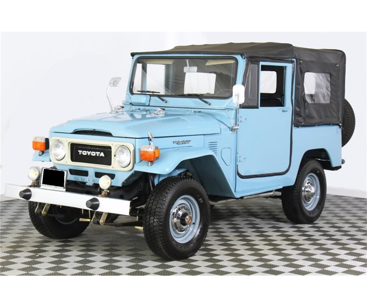 Beautiful 1982 Toyota FJ40 Landcruiser 4-wheel drive of course with locking hubs she also has power drum brakes that work quite nicely. Toyota J2 6-cylinder engine that performs quite nicely. Finished in Sky Blue the paint is very nice .