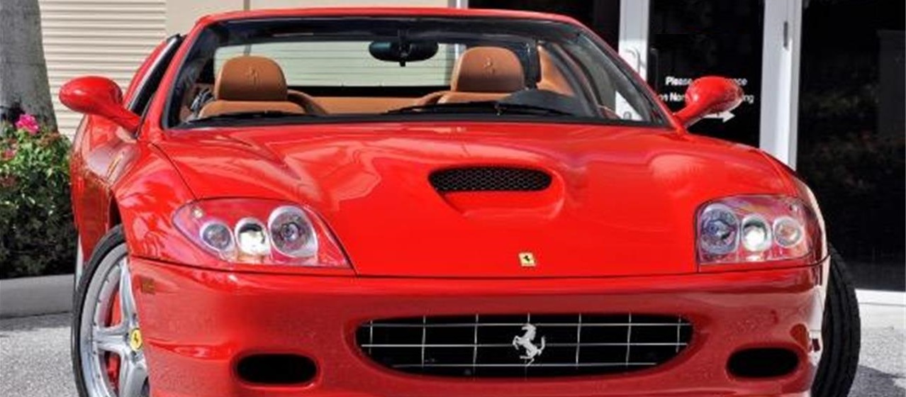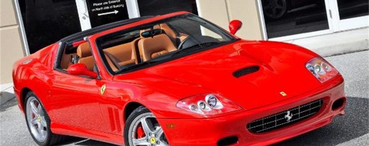 2005 Ferrari 575 Superamerica Rosso Corsa Red with Nuovo Cuoio Leather Interior Only 2,068 Miles Loaded GTC Package Scuderia Shields F1A Transmission Red Brake Calipers 1 of only 559 Produced Carbon Ceramic Brakes Power Daytona Style Seats Carbon Fiber Interior Trim Ferrari Classiche Certification Book High Power HiFi Sound System with CD Changer Rear Wall Leather Upholstery in Cuoio Factory Modular Wheel Rims.