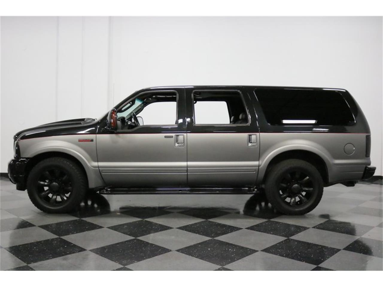 The Excursion was already an imposing truck from the factory, but this one's been turned up to 11. It was stripped to bare metal in 2017, and during the next 18 months it was redone in a combination of Tuxedo Black Gloss up top, matte silver with glass beads below, and splitup by a hand painted Ferrari Red pinstripe. But the fun did not stop there. An aggressive highflow hood was installed, the billet was powder coated, black stepbars were added, and the rear was debadged for a smooth look. All the windows are tinted jet black, as are the headlights and taillights, and LED fog lights help light up the night skies.