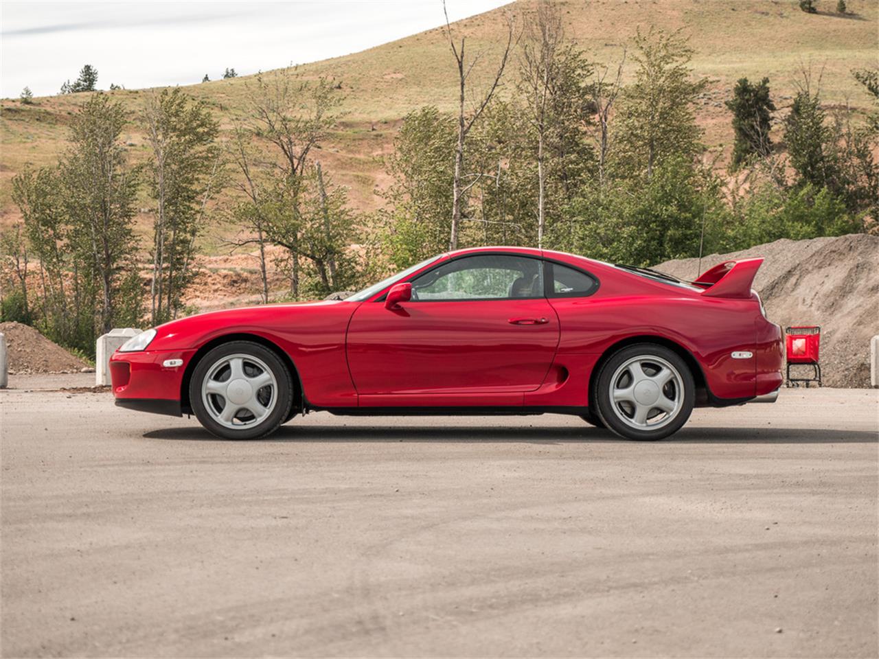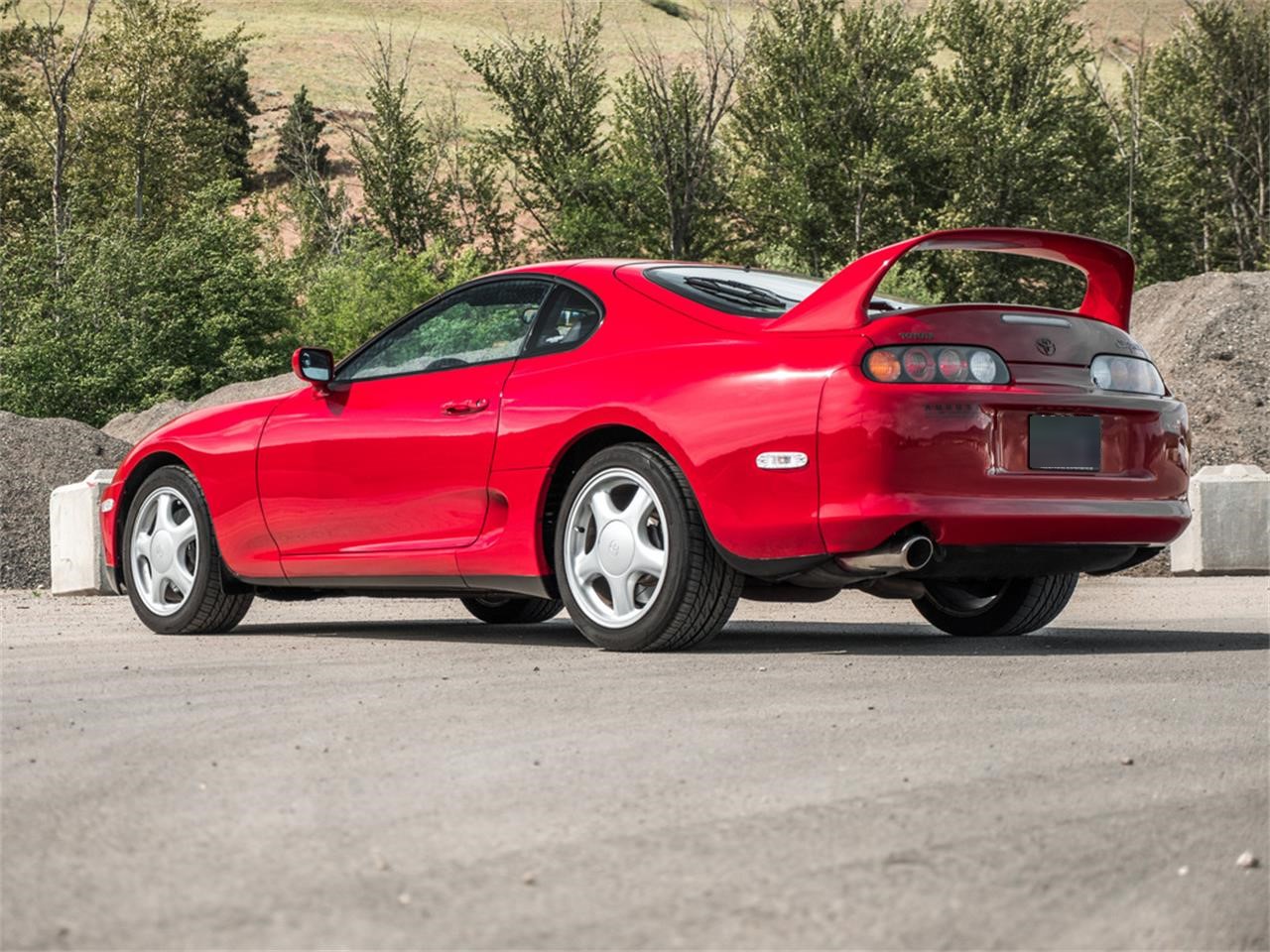 This incredibly popular and highly sought after 4th Generation Supra by Toyota. Finished in gorgeous Super Red Clearcoat over Black Front Bucket Seats with the sporty 4 Speed Automatic Transmission. The Supra is an absolute classic, sporting the iconic round taillights and classic rear wing.