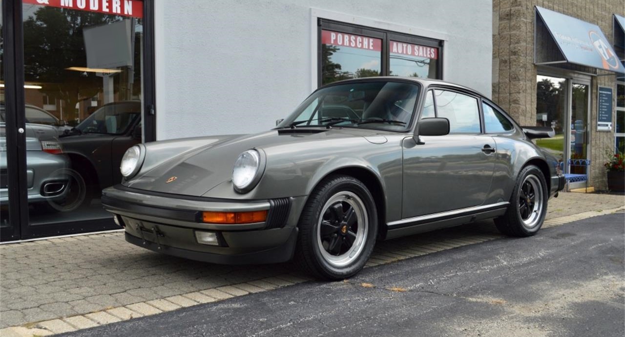 1987 Porsche 911 Carrera Coupe, Rare color, Granite Green Metallic over Dark Olive Green Grey , 52K Miles, 16 Fuchs, Limited Slip Differential, Black Piping on Seats, Blaupunkt Reno AM FM Radio, Front and Rear Spoilers, Partial Power Seats, Rear Wiper, Factory Amp w Two Speakers on Rear Shelf and Factory Sunroof.