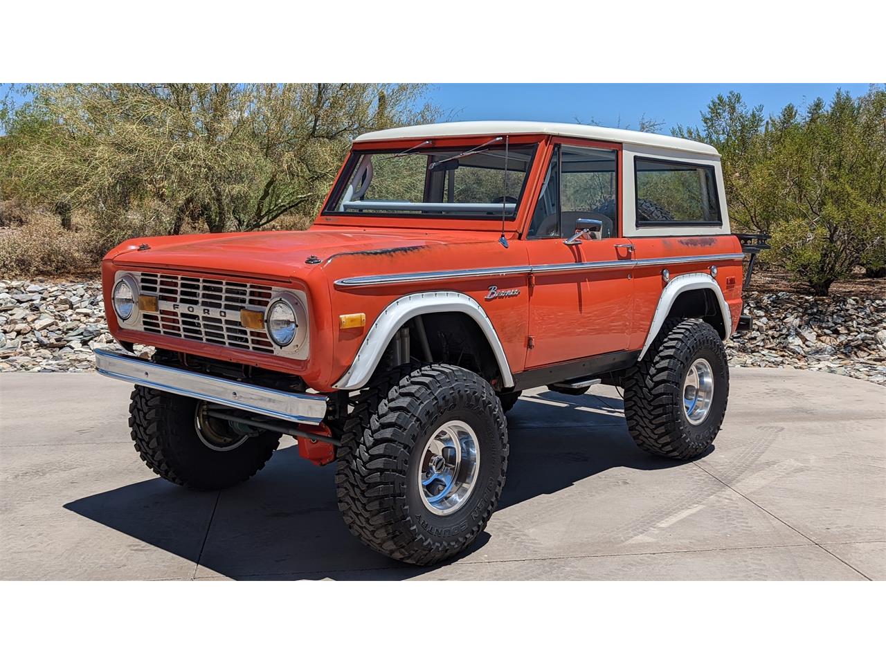 FOR SALE BY OWNER!! ORIGNAL PAINT ARIZONA DRY DESERT PATINA SURVIVOR FINNISHED IN THE DESIRABLE AND SUPER RARE COLOR CALYPSO CORAL! 3 OWNER BRONCO HAS ALWAYS RESIDED IN ARIZONA SINCE NEW BEEN GARAGE KEPT AND WELL PRESERVED! AMAZING PATINA AND RUST FREE CHASSIS AND BODY THEY ARE HARD TO FIND IN THIS CONDITION!! FUEL INJECTED 302 CRATE ENGINE WITH C4 AUTOMATIC TRANSMISSION RUNS AND DRIVES VERY STRAIGHT AND RELIABLE! THE LIFT AND SUSPENSION WAS BUILT AND ENGINEERED TO BE ABSOLUTELY ROCK SOLID WITH INCREDIBLE OFFROAD PERFORAMNCE AND STREET DRIVEABLILTY AND STABILITY! BRAND NEW TIRES AND WHEELS, FULLY SERVICED, TURN KEY AND READY TO GO! UPGRADES INCLUDE, 4 WHEEL DISC BRAKES WITH HYDROBOOST, BRAND NEW SHOCKS, AUXILLARY AIR COMPRESSOR, LOCKING DIFFERENTIALS, 320 HP CRATE ENGINE WITH HEADERS AND DUAL EXHAUST! I HAVE 2 OF THESE BRONCOS BUILT BY THE SAME OWNER YEARS AGO I HAVE DECIDED TO KEEP MY GREEN ONE AND SELL THE ORANGE ONE AS I ALREADY HAVE ORANGE TRUCKS IN MY COLLECTION