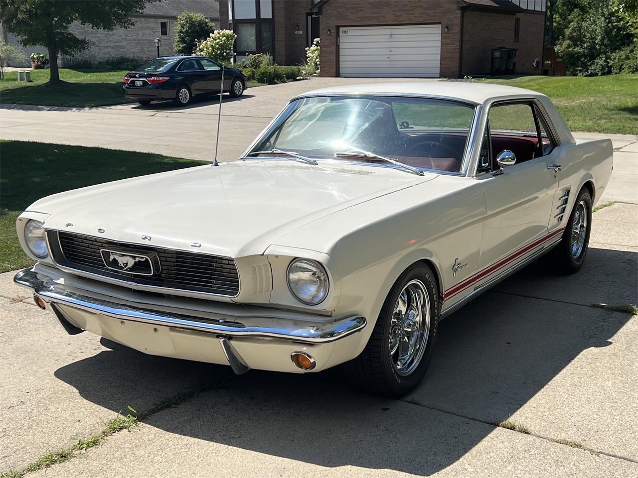 A very clean 66 Mustang Coupe that was originally an inline six cylinder with a manual 3 speed transmission