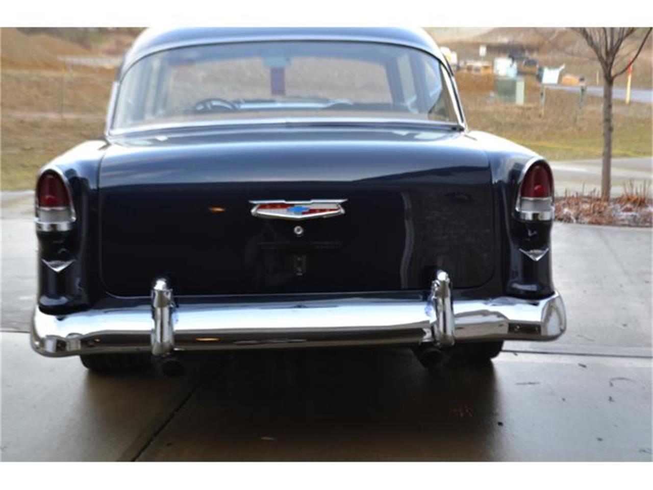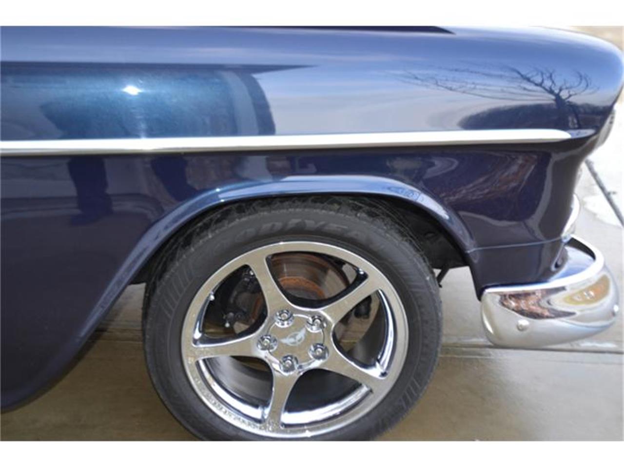 Absolutely georgous 1955 2 door sedan, deep Indigo Blue with super beige leather interior...custome guages, tilt Ididit Steering Wheel and column, 383 Cubic Inch Engine with dual four barrell carbureters, Vintage heat and Air, Four Wheel Discs, power Steering, Power Brakes, Auto tranny,16" Corvette Polished Chrome Wheels.