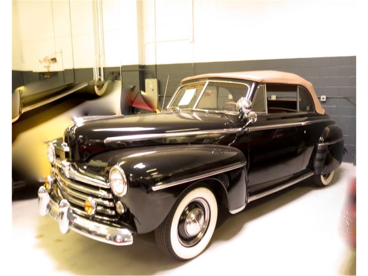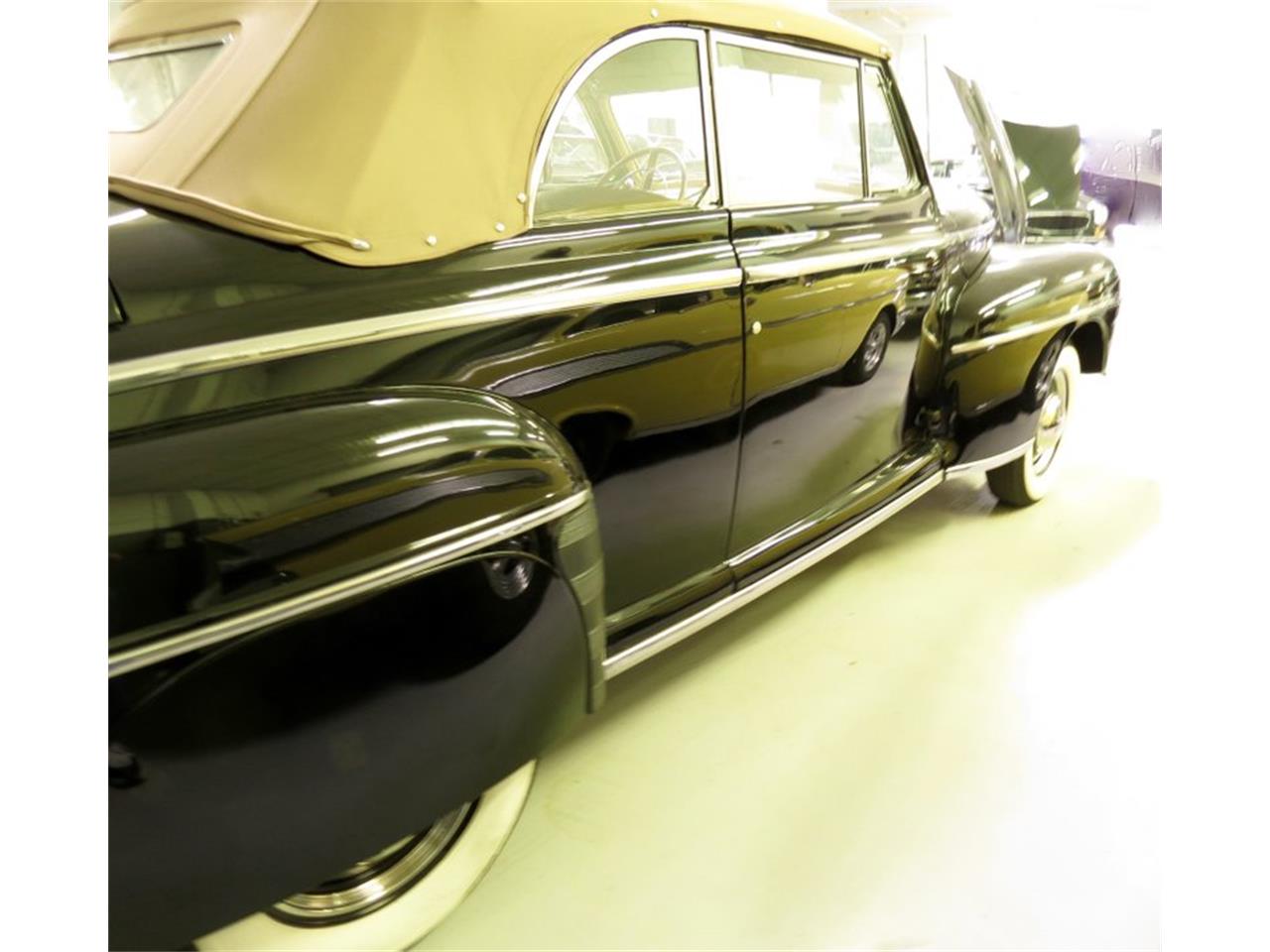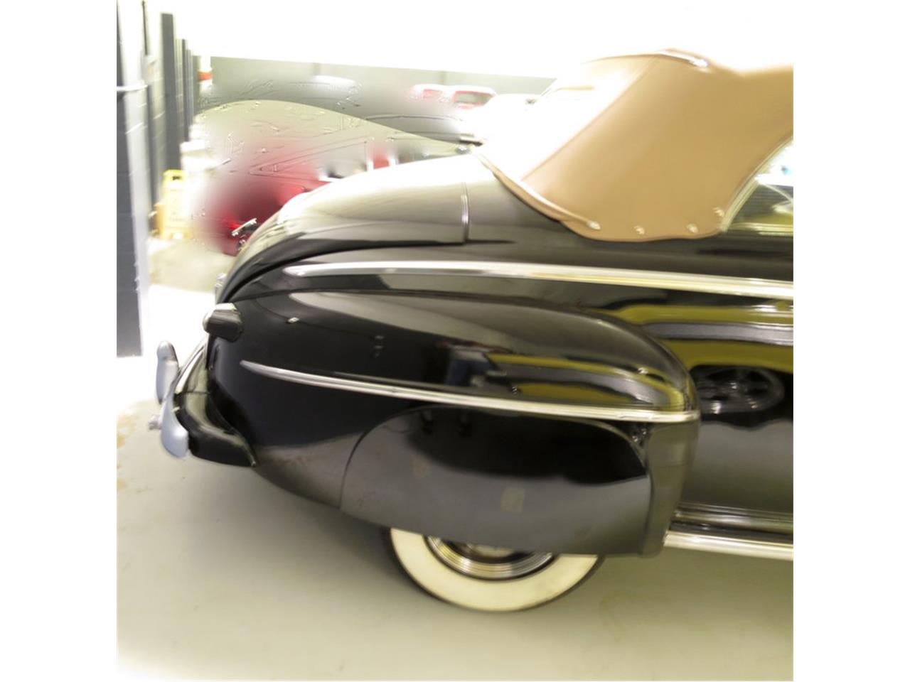 The body has never been separated from the frame and that it retains the original flathead V-8 engine and the column shift manual transmission. Factory options on this Ford include: power top, full fender skirts, bumper mounted driving lights, dual exhaust, driver side spotlight, factory AM radio and an electric clock. Flathead V-8 engine, Column-shifted manual transmission. Power Convertible Top, Fender skirts, Dual exhaust, Drivers spotlight.