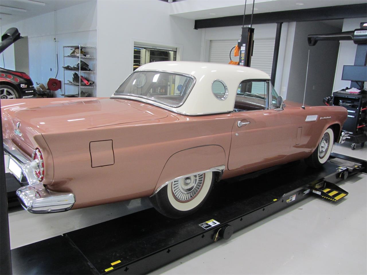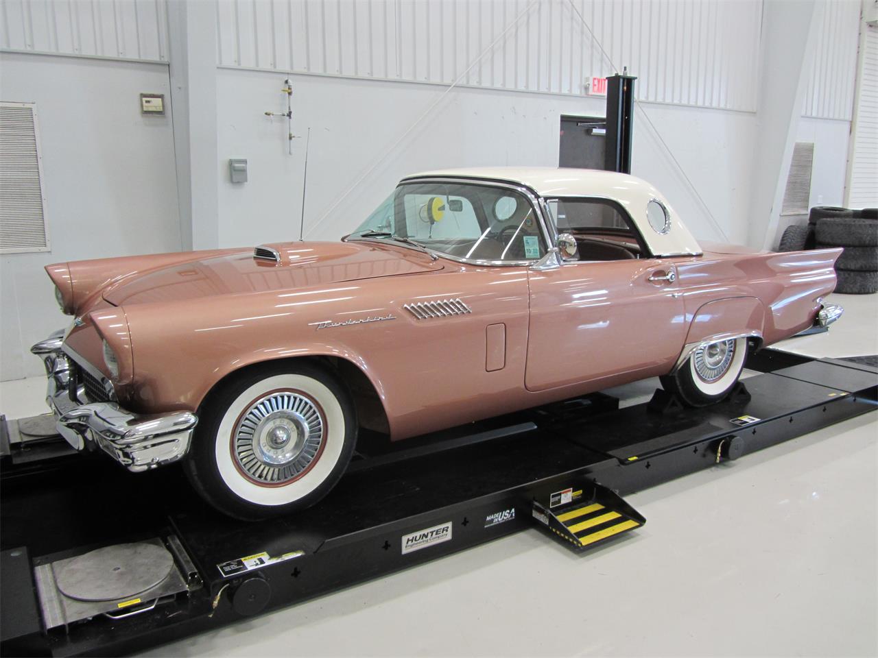 57 Ford Thundrbird, 312 V-8 Engine, Fordomatic Automatic Transmission, 4 barrel Holley carburetor, Removable hardtop, Town and Country radio, Power steering, Period correct battery, Manual windows and seat, Stainless Dual Exhaust. This car is a driver in very good condition, ready to cruise around town or take to a show.