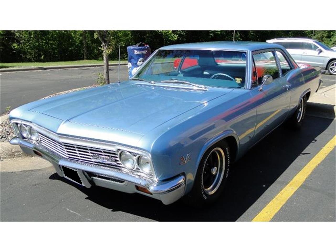 This is a beautiful 1966 Chevrolet Biscayne 2-Door Post 427 4-speed muscle car, Finished in its original factory color combination of mist blue exterior wrapped around medium blue vinyl bench seat interior. The rust-free sheet metal is laser straight all the way around and the mist blue paint is beautiful. All of the chrome and bright work is in show condition. The undercarriage is super clean and solid. The blue vinyl bench seat interior is in perfect condition. All of the gauges, lights, blinkers, AM radio and period correct Dixco tachometer work perfectly. The Chevrolet 427 engine is super strong and runs like a freight train while the Muncie M21 4-speed transmission shifts smooth with no issues. The 3.73 rear end feels tight and will snap your head back when you shift through the gears. The power steering makes maneuvering this muscle car effortless. The best thing about this beautiful car is the way it performs. It starts, runs, drives, steers and brakes like a dream.