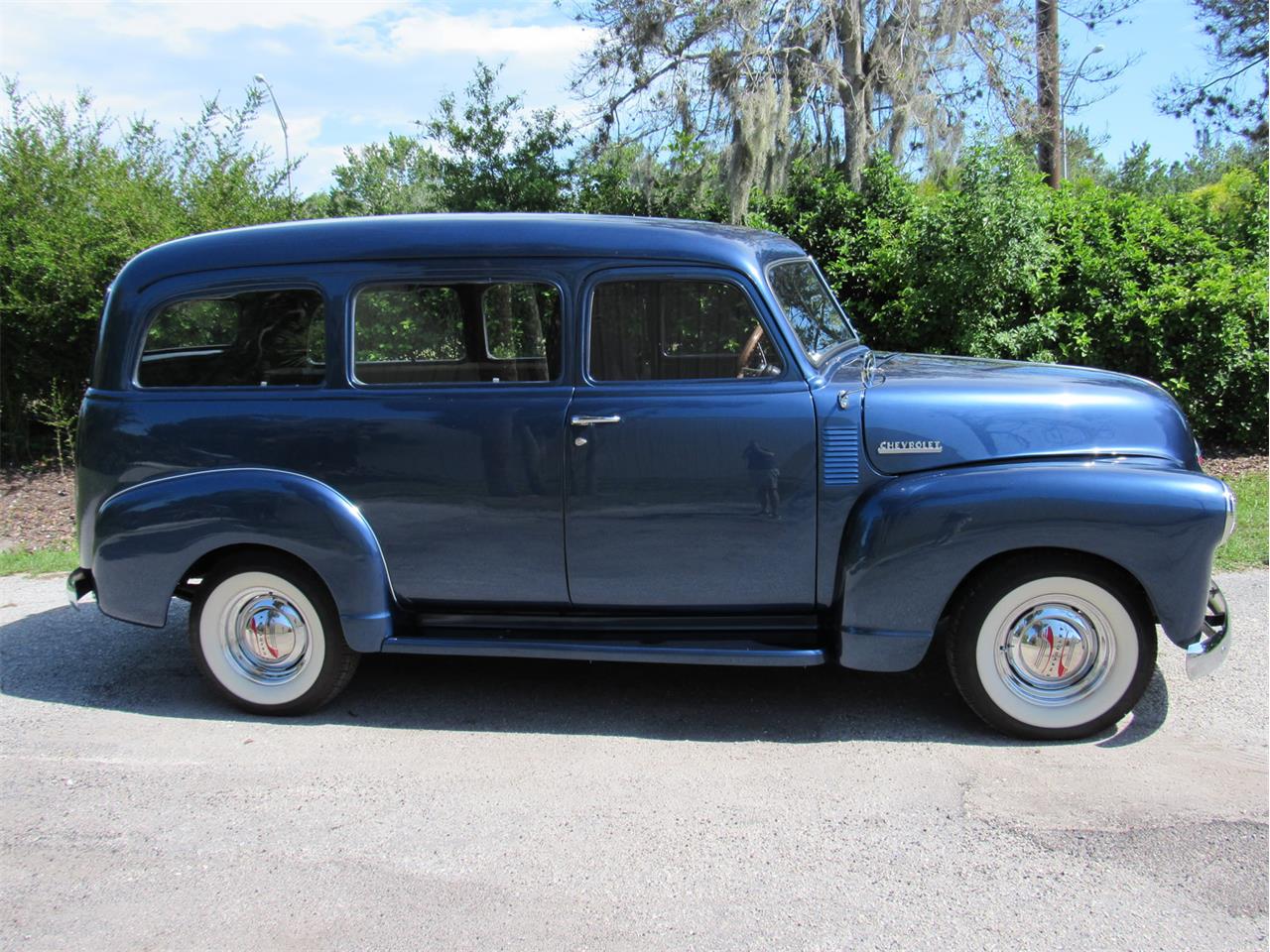 Dark Metallic Blue Exterior Black Leather Bucket Seats 307 ci/ 305 HP VORTEC V8 Automatic Transmission Cold A/C Power Disc Brakes Power Steering Full wood bed. Beautifully example of a very rare 1949 Chevrolet Suburban.