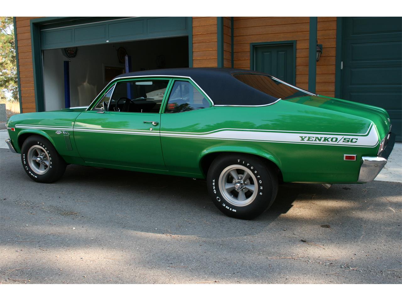 this Nova has a correct dated 427 block, heads, and intake. It has a correct dated 4 speed transmission. It has a correct dated 12 bolt third member differential. Everything about the car is correct including the radio delete. The body work and finish is excellent without blemish. The fit and finish is beyond perfect and all the seams are straight and uniform. The paint is Chevrolet’s Rallye Green and is perfect show quality. If 10 is the standard, the body and paint are an 11.