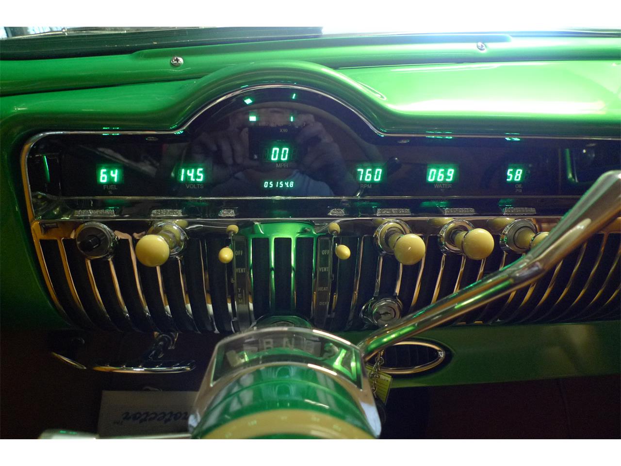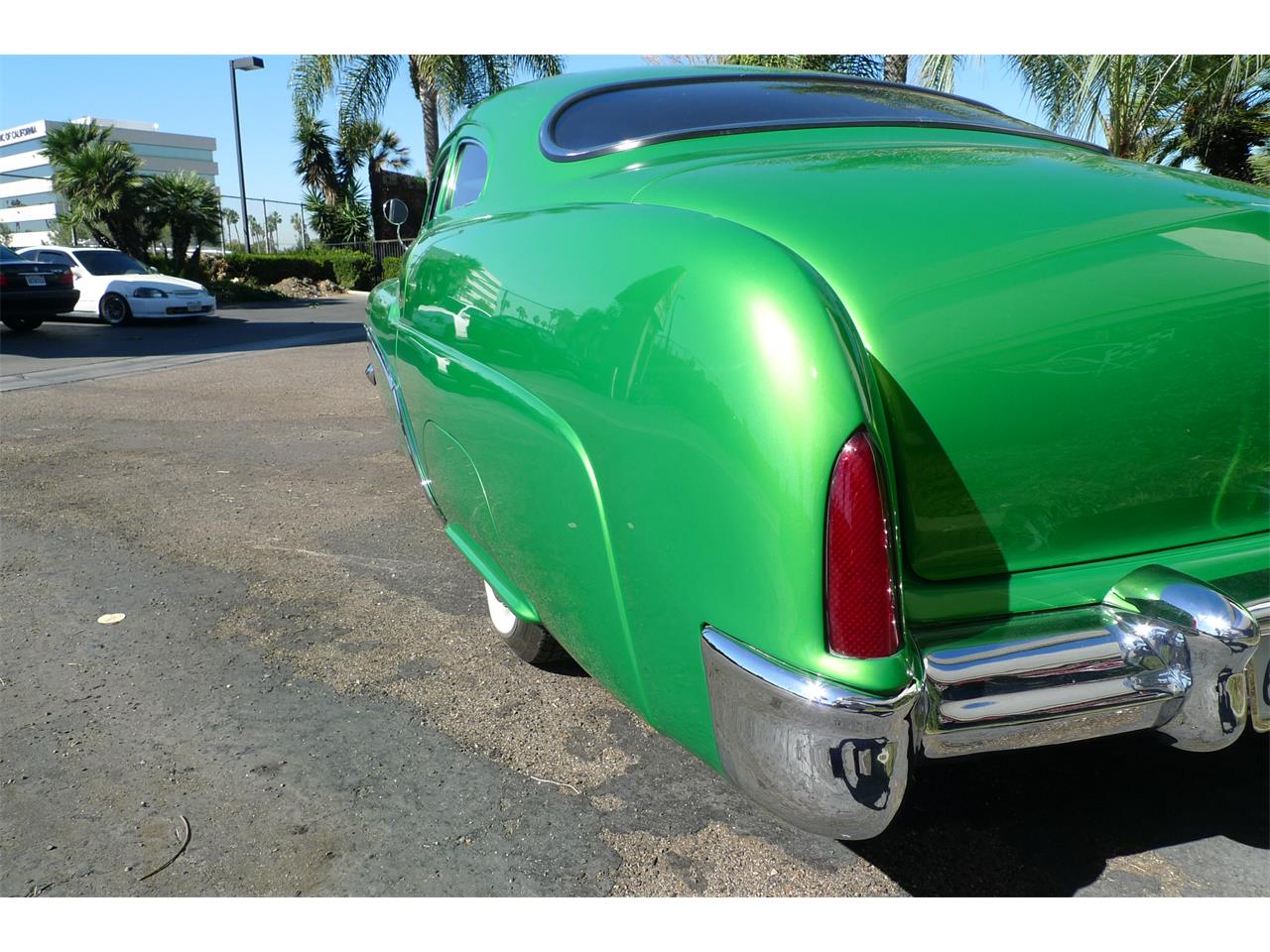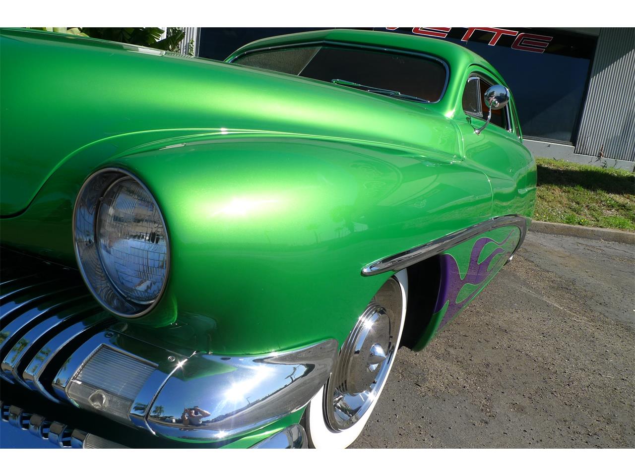 This is an incredibly 1951 Mercury Coupe Lead Sled, rust free. Chrome window trim, molded in drip rail above the side windows, recessed rear bumper. Green with pearl, full leather interior including door panels, suede headliner, and wool carpets. It has a green lighted Dakota Dash, Vintage air conditioning, rear air bags, shaved handles, 302 engine, C4 transmission, and Ford 9" rear end. front power disc brake. This car only has 5,165 miles.