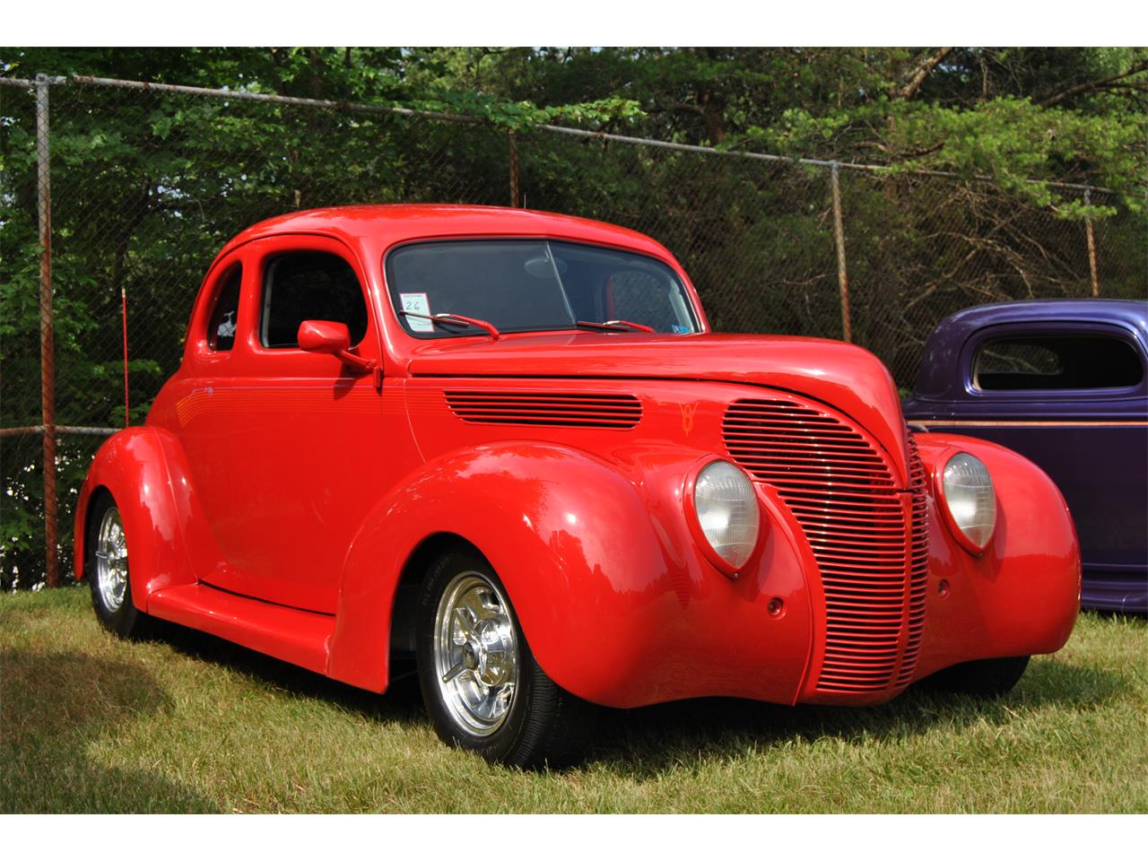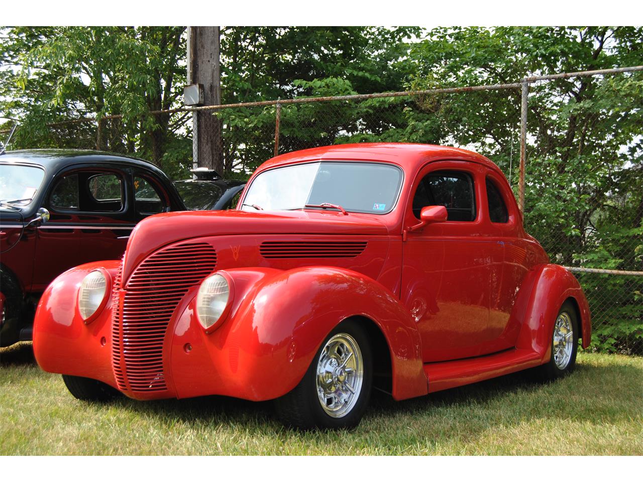 This is a 1938 Ford Deluxe Coupe with a very good body. It has Frenched tail light & Parking lights. Also a frenched licence plate, gas filler door & antenna. It is a Driver with still only 25,000 miles on it ! Legacy Wheels & Knockoffs. Tilt wheel, AC,PB,PS,& the Power Windows are run on the original Track which lets the glass come up & down leaving a vent opening. 350/350 with a larger cam, 400 turbo with a 3000 stall/ Walker radiator. This ford is a Super Ride & Driver ! ALL STEEL ! EVERYTHING ! I