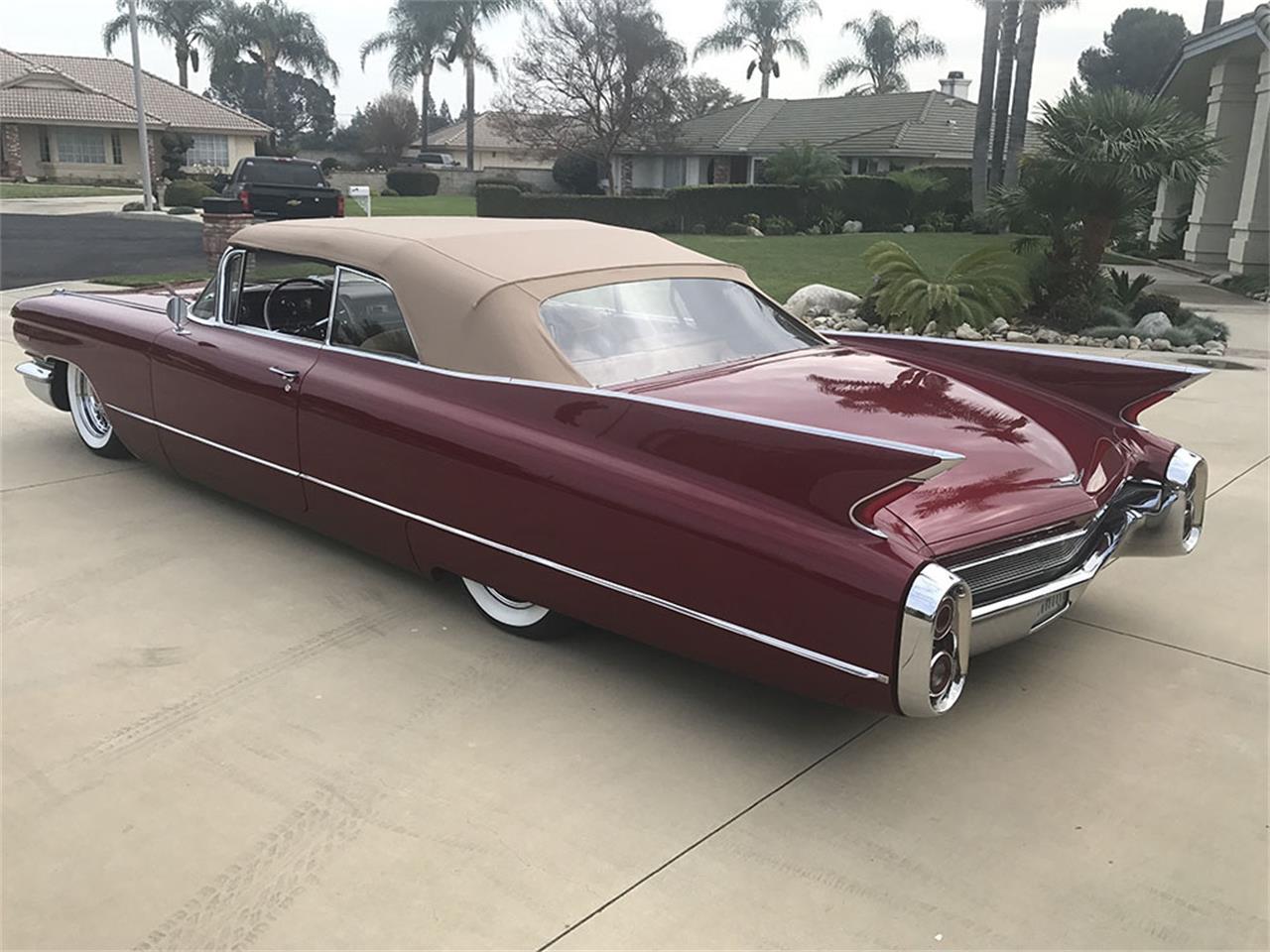 1960 Cadillac Convertible drop top a/c air con P/s p/w p/b Power top, wire wheels big white wall radial tires, factory Radio works, hidden stereo, factory clock. Conv top boot Spare tire cover, factory Rear skirts. LS3 engine. Air ride suspension. Immaculate paint. All chrome in excellent condition. Stainless steel fully. Leather interior.