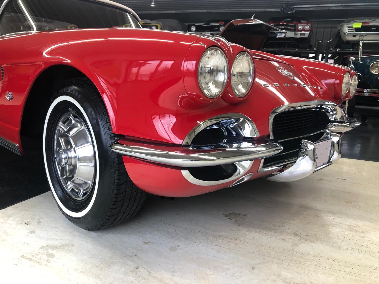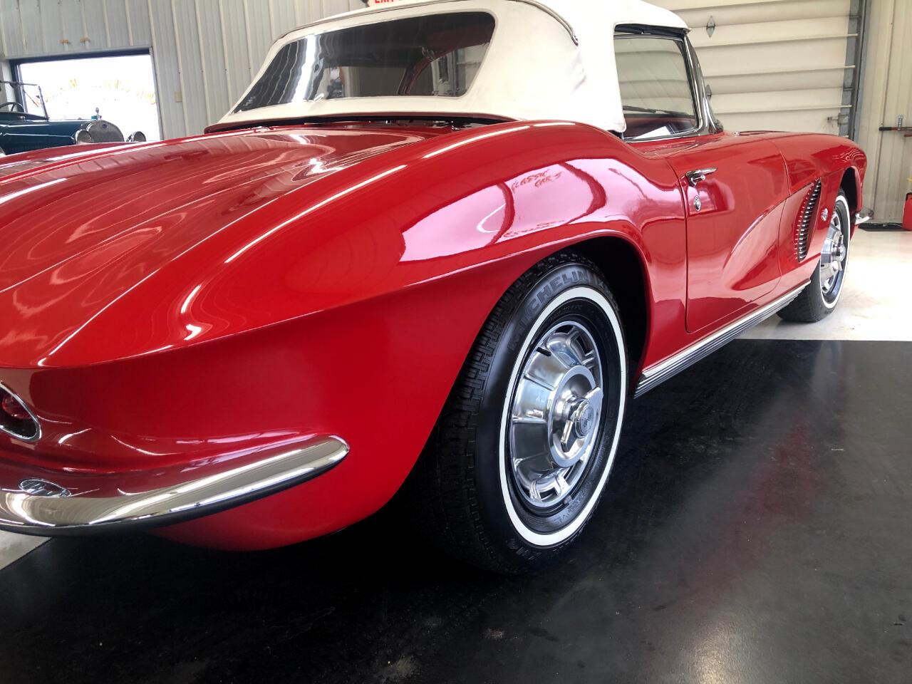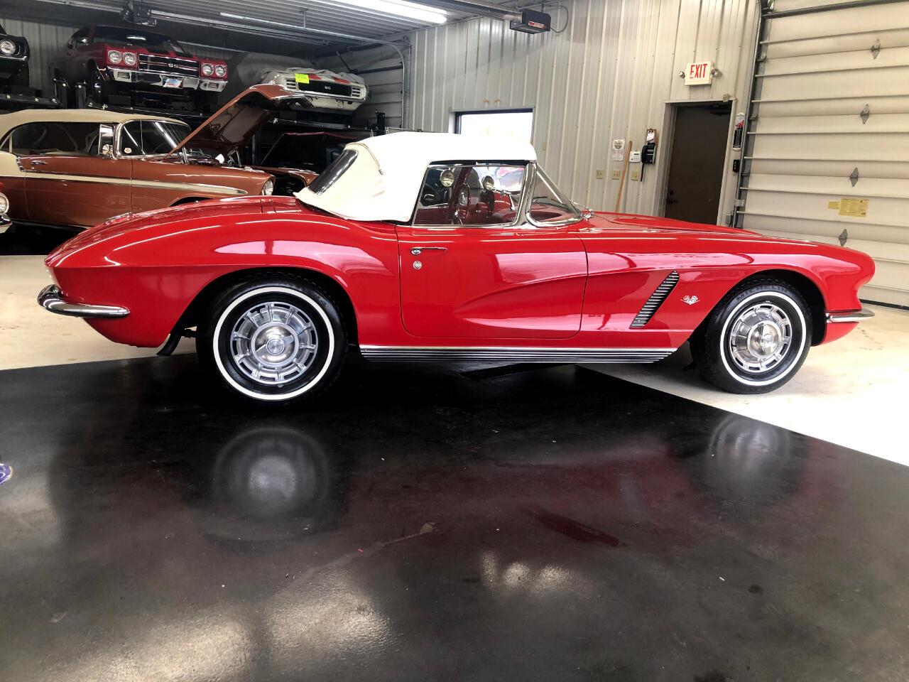 1962 Chevrolet Corvette, 18,492 miles. Power is supplied by a period correct 327 small block. Frame suspension are in great condition. Chrome and bright work is in excellent condition. This interior color is stunning seats carpet door panels etc are in terrific condition. To top off this gorgeous roadster is a beautiful white convertible top that goes well with the white walls.