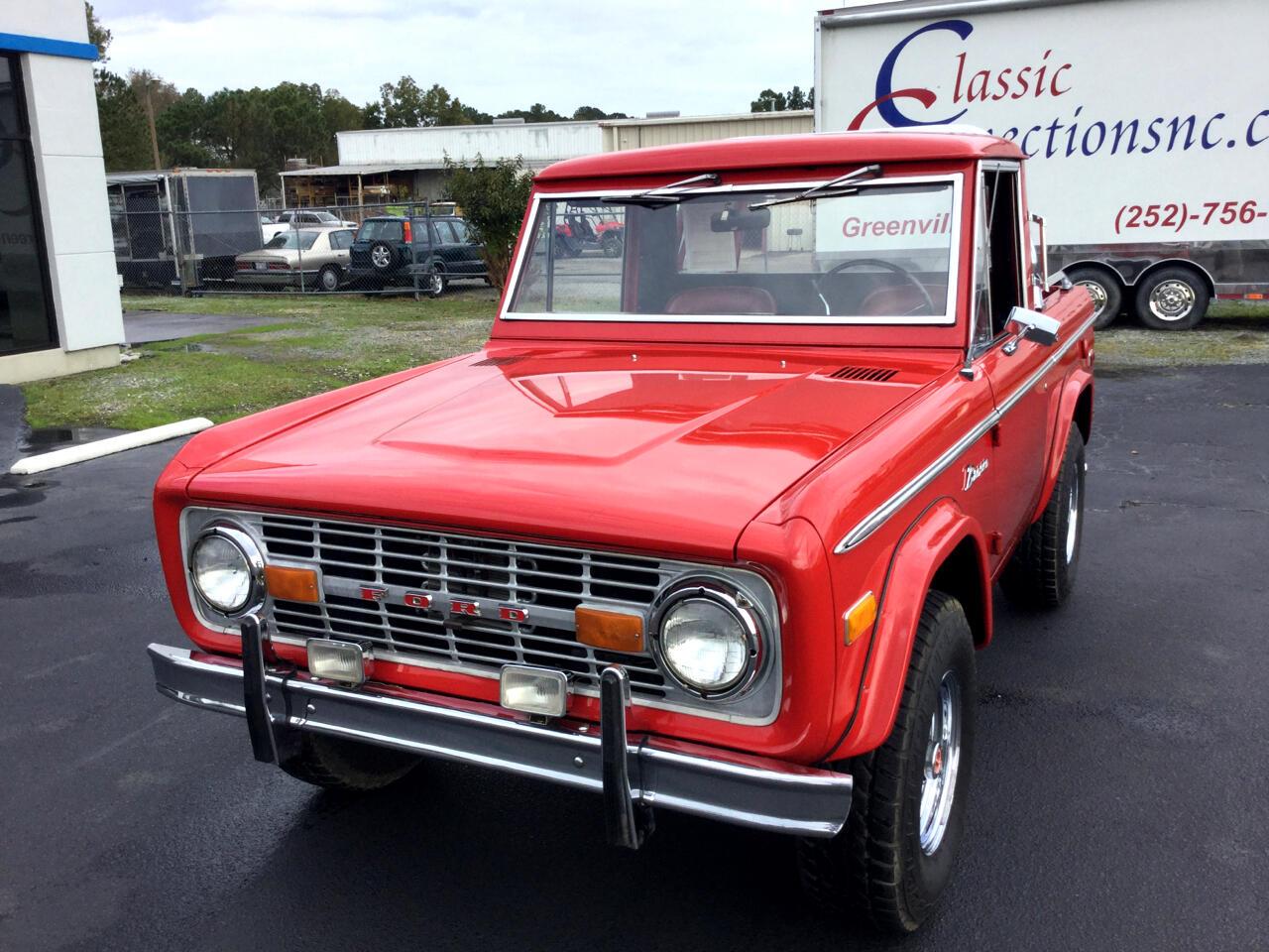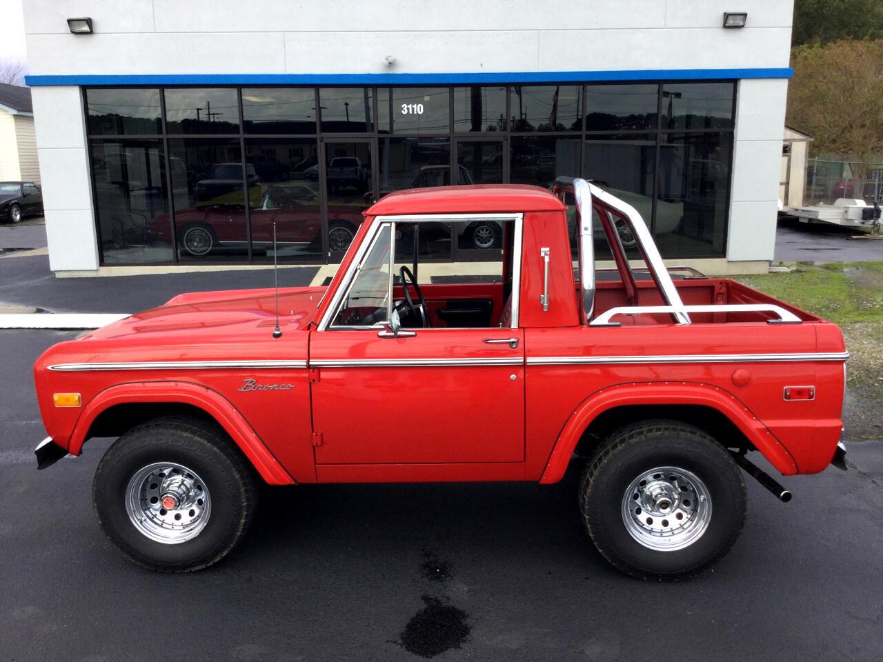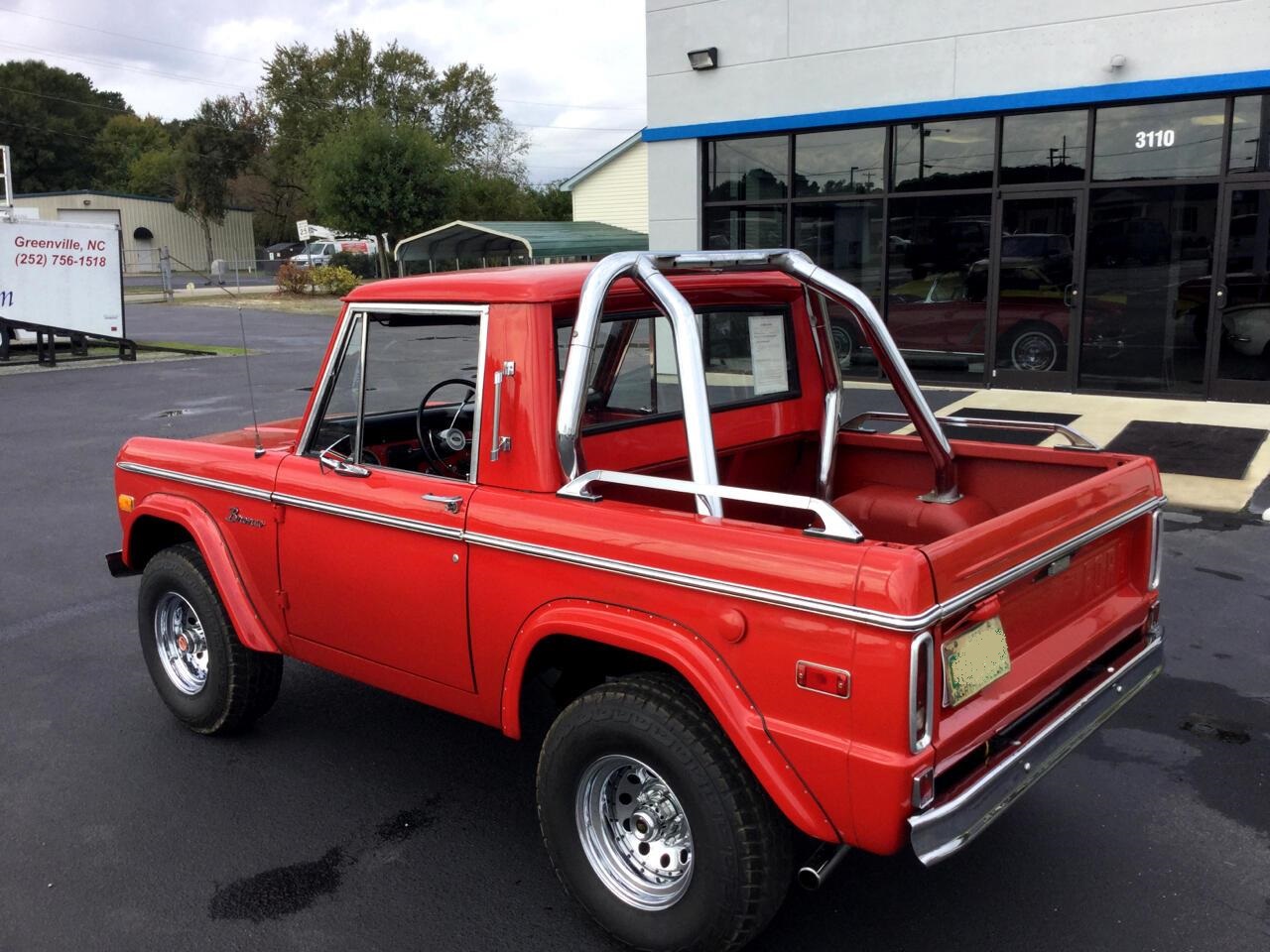 FIRST GENERATION BRONCO - TRUCK STYLE 4X4. This one is the Original rust free. It has the optional 302 V-8 ENGINE AUTOMATIC TRANSMISSION, POWER STEERING and power brakes. CHROME roll BARS with OFF ROAD LIGHTS. CHROME WHEELS and larger than standard tires, front PUSH BAR with more fog lights and it's Red.
