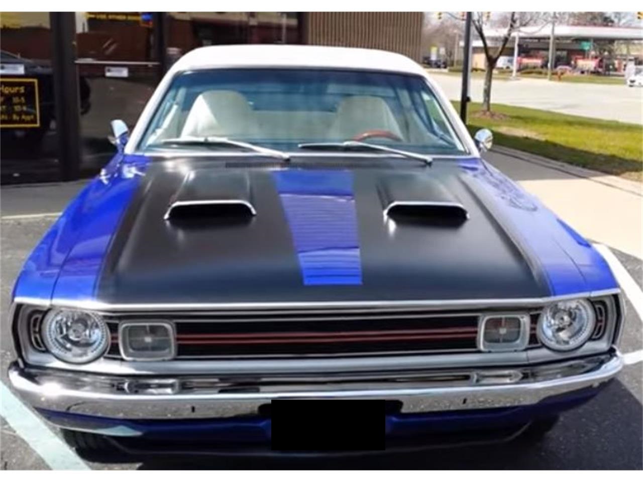 It is powered by the 340 6-pack. Over-Drive transmission and Dana 60 rear-end with 4:10 positraction. It has 4-wheel disc brakes and staggered Foose wheels and Hercules Raptis tires with 17” in front and 18” in back. The interior with white vinyl seats and headliner is super comfortable and has a custom dash with wood accents holding a full set of Equus gauges, Vintage Air controls and AM/FM CD. The interior is lit with blue LED lights. The headlights are also encircled with LED lights. Custom blue with flat black accents and white top. The car is immaculate and beautifully detailed.