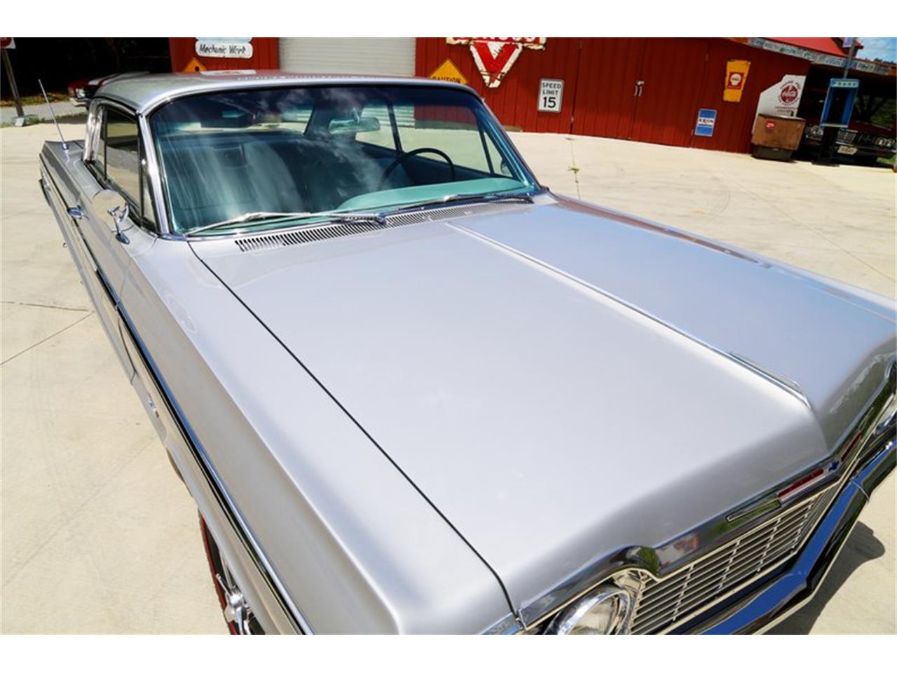 We will start off with the exterior of the Impala. From first glance, you will see that the body is straight down the sides with excellent gaps at the doors, hood, and trunk. The body is covered in the Satin Silver paint that has been buffed and polished to a deep rich shine that s slick as a ribbon. When restored new bumpers were installed front and rear. The rest of the emblems and stainless are in great condition with some light nicks and aging. All the glass is in great condition and has had new seals installed.