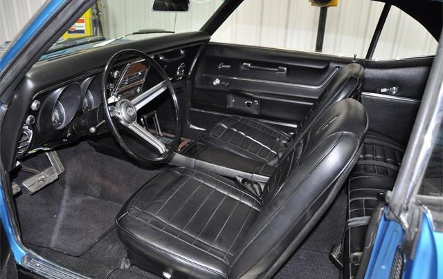The restoration was done complete from a rotisserie stand point and finished off with a superb blue black rally paint job. To complement the outside original look a set of era looking correct Goodyear wide tread GT tires were applied to the rally wheels to capture the great look and stance of this RS. Moving to the inside, it too holds down detail as if off the factory floor with Strato bucket seats, factory black deluxe interrior, console shifter, etc.