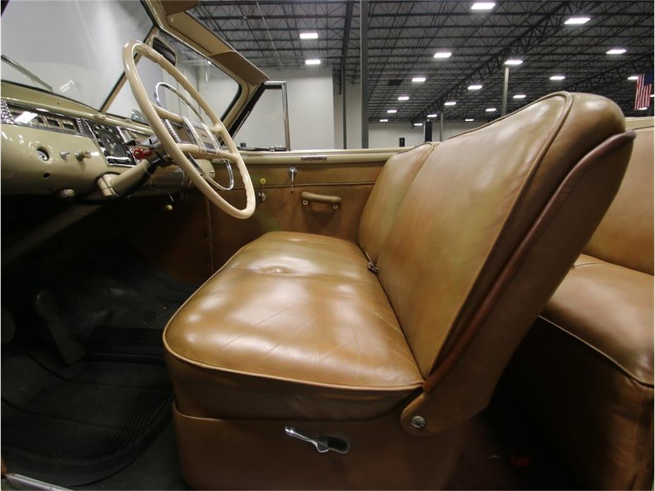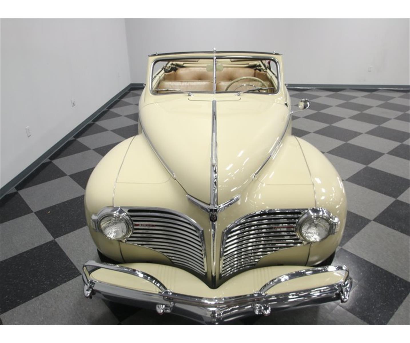 This 1941 Dodge Luxury Liner convertible is the pinnacle of luxury, design, and presence for prewar production cars. The Luxury Liner name comes from the era in Dodges Dseries cars where they really started to understand design. The headlights were not only integrated into the fenders, but also are an extension of the grille design. The beige paint has a nice luster that makes sunshine friendly droptop look great on the open road. And even on gray days the well coordinated tan folding roof and larger glasshouse of the Luxury Liner gives this one nice lines with the top up.