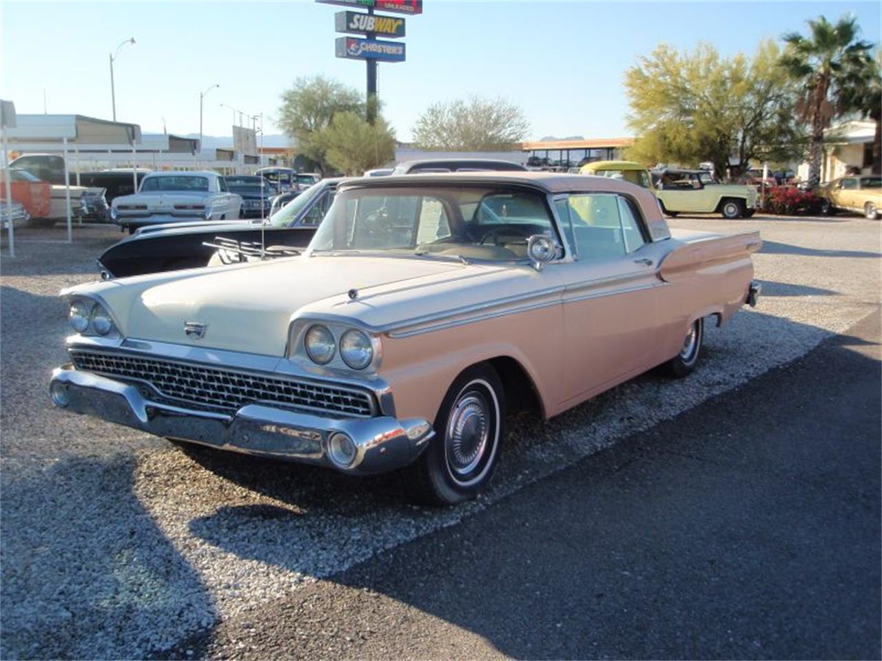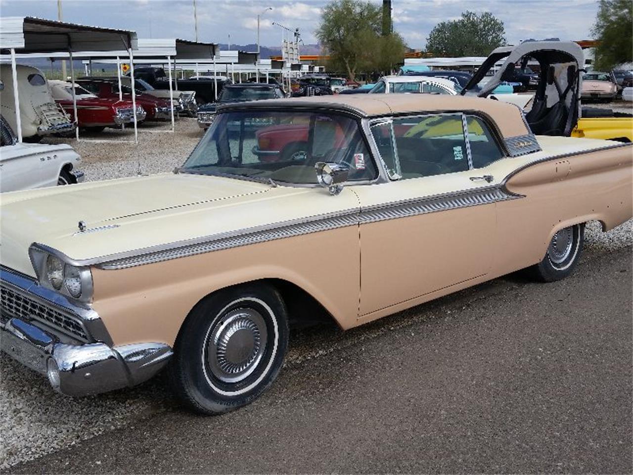 2 door 1959 Ford Galaxie Skyliner retractable convertible top. 4 BBL carb, Auto, H Code, 352 V8, 300 HP.