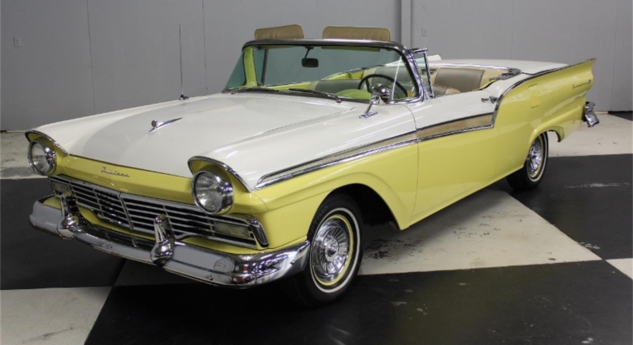 Painted ina a beautiful Yellow and White color, with the front and rear bumpers re-chromed, door handles are good, body side moldings look good, antenna good, grill has been re-chromed, head light trim re-chromed. All the emblems like new. Front bumper guards have been re-chromed. Window trim looks great. Single outside mirror like new. Original hub caps with newer tires, drum brake all four corners. A beautiful car. New Tan vinyl & gray material on a bench seat and beautiful. New chocolate color carpet, original sill plates, dash painted yellow and white, seat belts, black column and steering wheel. Automatic on column, aftermarket radio Kenwood AM/FM/CD player, under dash gauges. Original AM radio. Nice inside. Rebuilt 312 engine V8, rebuilt Automatic transmission, Holley carb new. Chrome air cleaner, aluminum polished finned Thunderbird Ford valve covers, original exhaust, chrome power steering pump and brackets, electric fan, chrome oil spout and cap, newer wiper motor, chrome alternator & brackets, chrome pulleys, new plug wires, slip over braided hose covers with chrome ends, dual horns, new belts, chrome transmission dip stick, chrome oil dip stick, slick fenderwells and firewall painted white, Under hood insulation. Power steering, dual Magna flow exhaust.