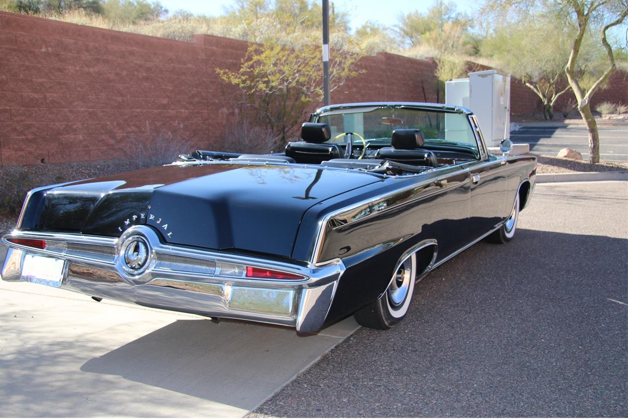 Very rare triple black Chrysler Imperial convertible. 100 original and low milage. The claro wood interior accents are in excellent condition. Drives and handles great. Power everything, power windows, power steering, power brakes, power top and air conditioning.