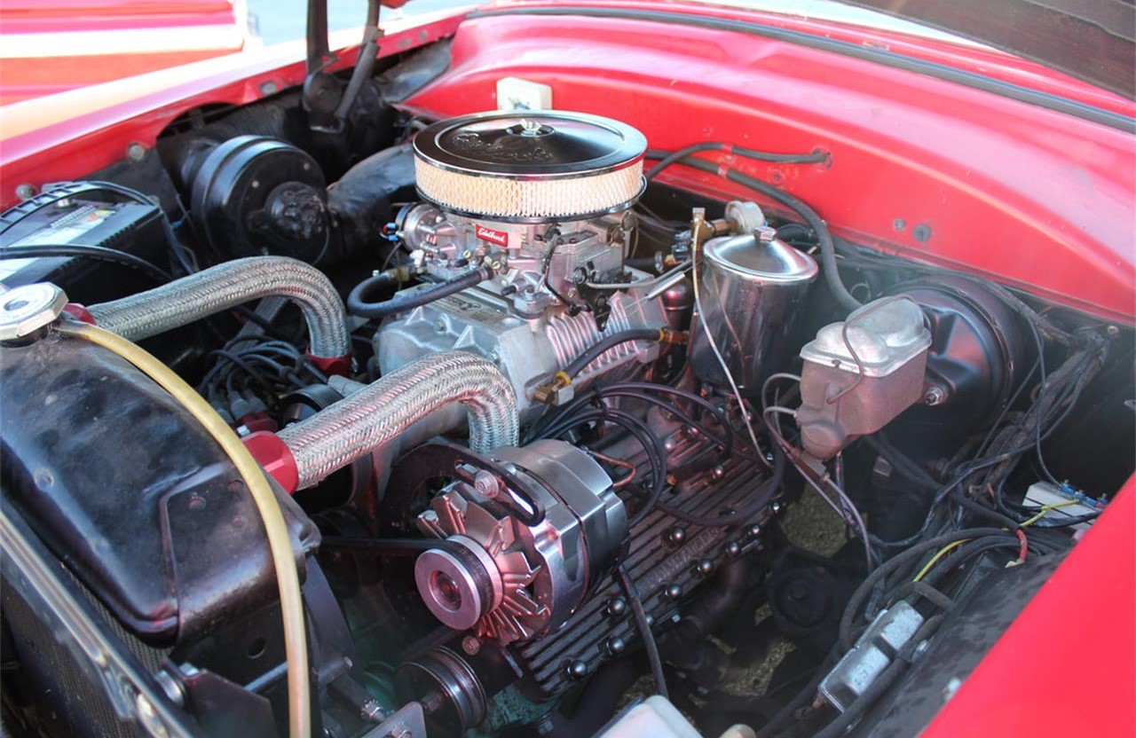 Red exterior, white convertible top Red white interior Super Charged Flathead V 8 Late model 5 speed Mustang transmission Late model power brakes with a dual master cylinder This car has been converted to a 12 volt, has one wire alternator 2 inch drop spindles on front Lowered 2 inches in the rear so it sets level