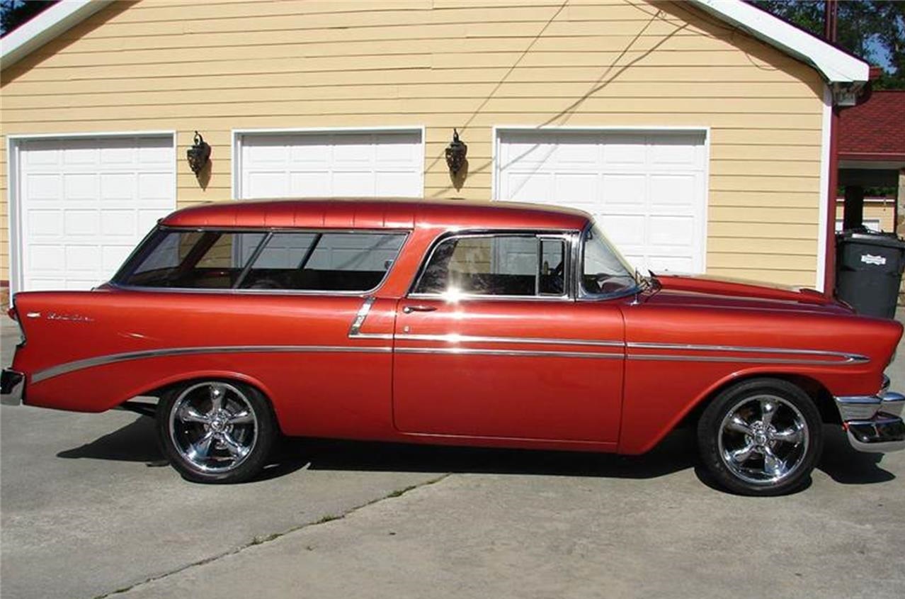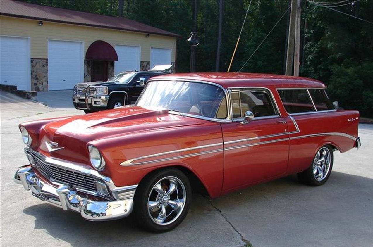 This beautiful 1956 Chevrolet 2-door wagon.It has great creature features to include new tan leather interior, cold blowing ac, power steering, power disc brakes and a great sounding am,fm radio.
