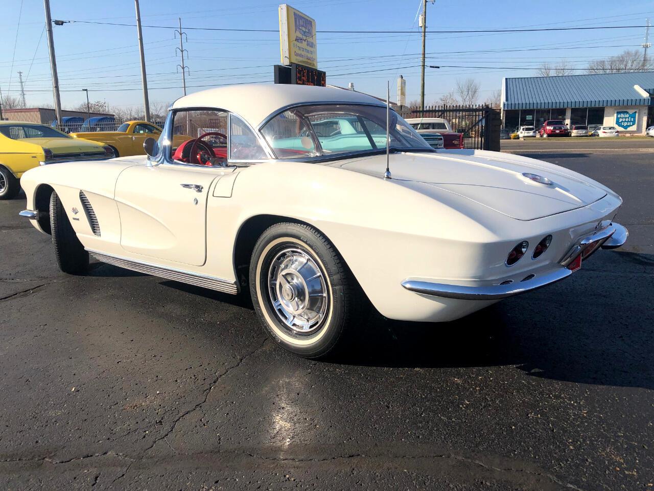 I am proud to present this rare fuel injected 1962 Corvette hardtop. It sports its factory correct Ermine white paint as properly indicated by the trim tag with a classic Chevrolet red interior. It has had two frame off restorations one in 1992 the other in 2002. Only OEM and NOS parts were used in the restorations.