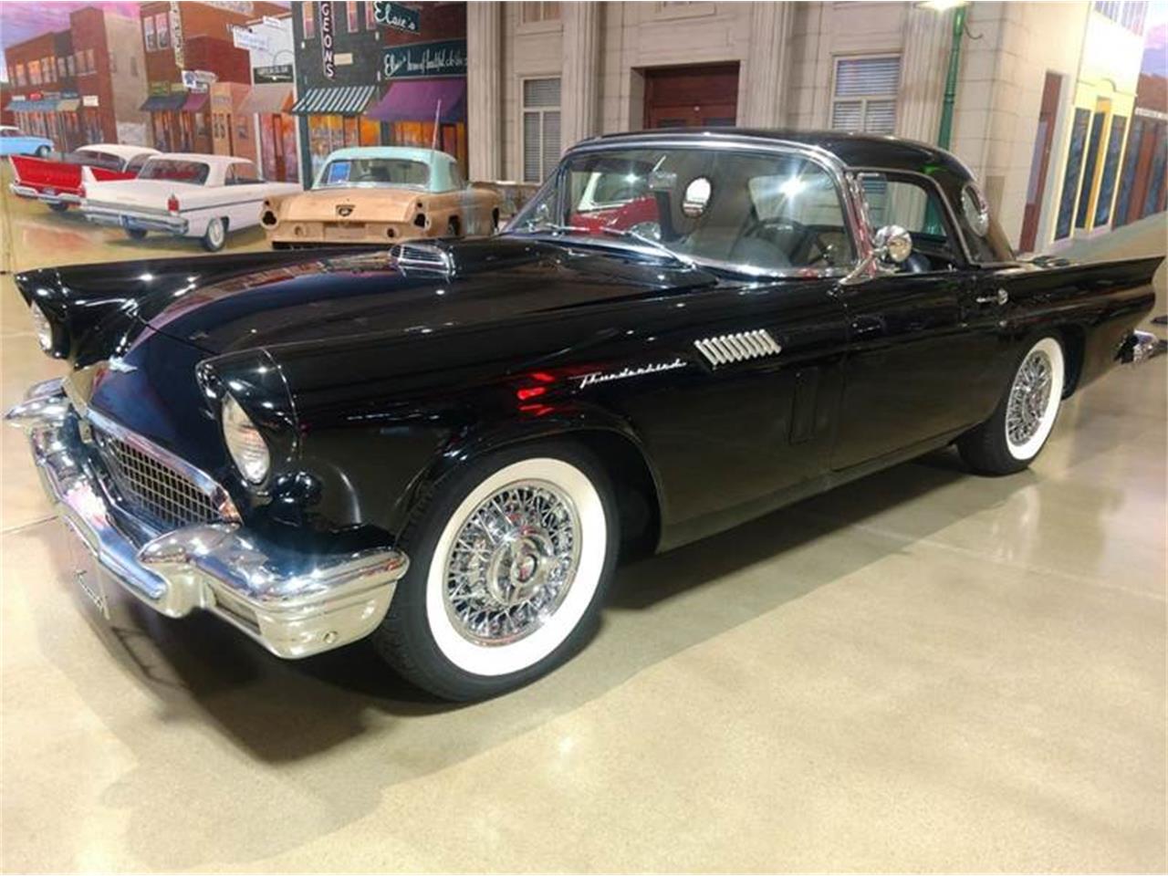 We have here a 1957 Ford Thunderbird, the last of the baby birds represented big time with fender skirts shown in pictures but not presently on car and wide white wall tires. It also has a fabric convertible top tucked in behind the seats so you won t get caught out in a rain storm.