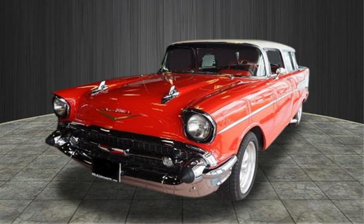 This car is a beautiful example of American Muscle from the 1950s. This Nomad is in wonderful condition.Under the hood, she has the 283ci 4.6L V8 Super Turbo Fire engine producing 220 horsepower. A 700R 4 speed Automatic Transmission.The Nomad has the black and orange interior, push button AM radio and single chrome exhaust.