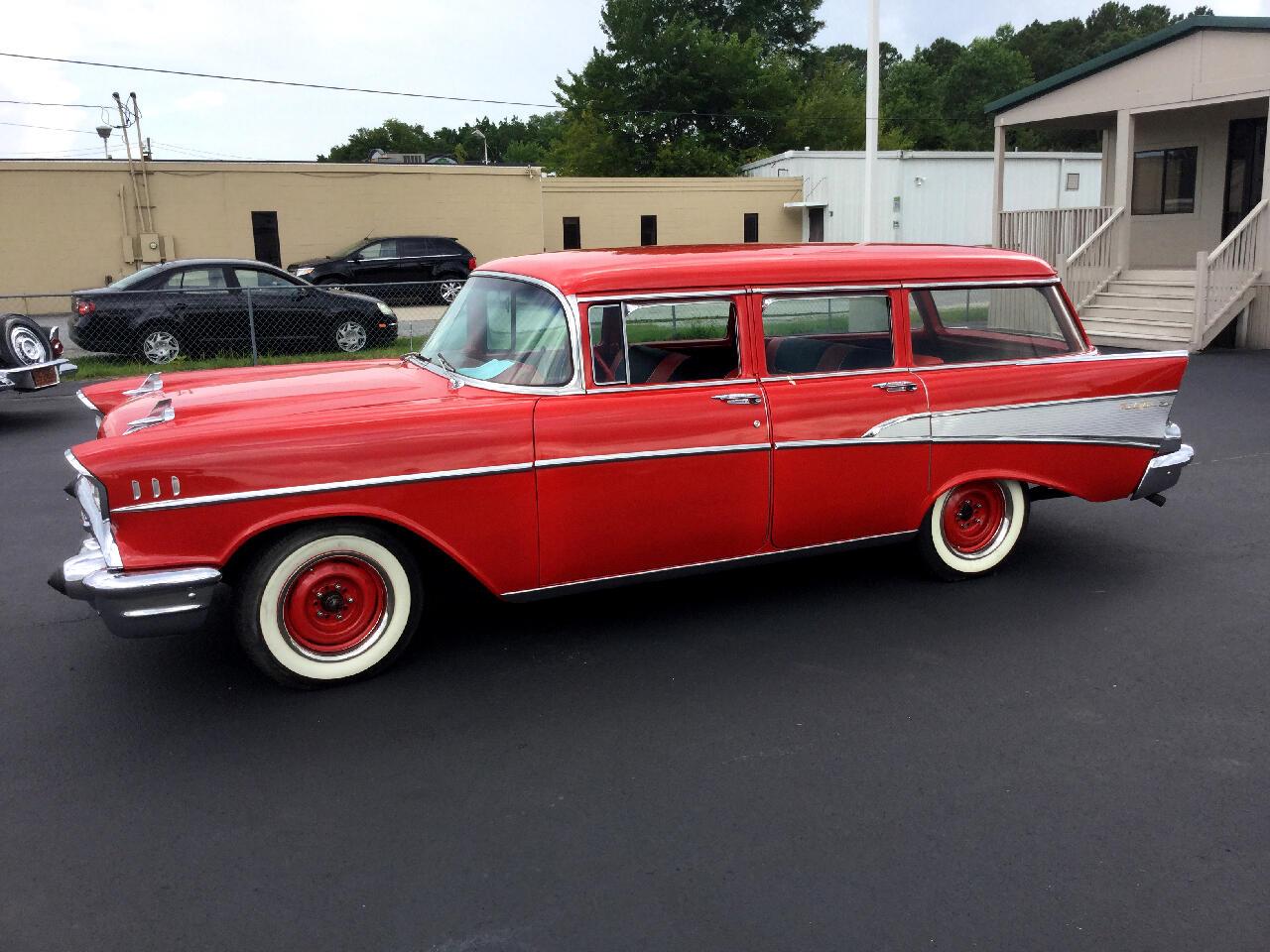 This is a beautiful 1957 Chevrolet Belair wagon with the original 283 four barrel power pack engine and a power glide transmission. Original 57 Belair replacement interior that's new carpet door panels headliner and more. New paint and all available chrome for the top of the line Chev.