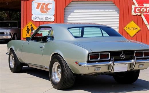 The body is arguably one of the best we ve ever seen on a Camaro. Looking down the sides you ll see it s straight as an arrow with near perfect gaps and fit of the doors. Everything is covered in the Seafrost Green Paint that s accented by the Black. This is a base coat clear coat paint job that has the stripe buried and has been buffed and polished to a mirror finish that s slick as a ribbon.