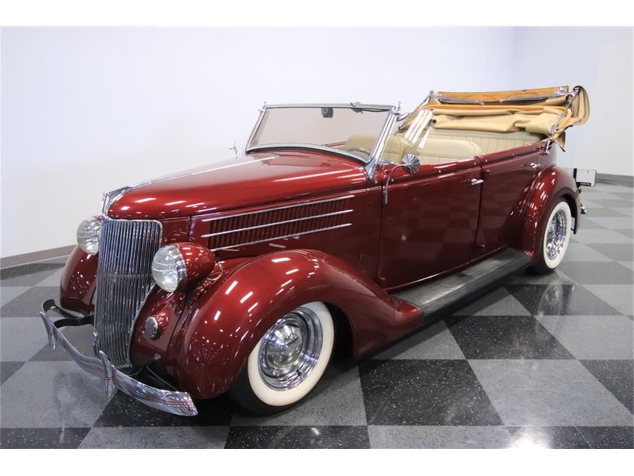 The 1936 Ford Model 68 Deluxe Phaeton was built as a true upper-echelon classic. And while this rare treat is still for only the select few, the slick paint, loaded interior, powerful ZZ4 crate motor, and many other upgrades prove that classic elegance doesn't have to leave you short on power, luxury, or flair. The thin convertible roof of the Phaeton body style is always desirable on a classic. It gives the car a very sporty and European feel with the top up. But more than rarity, you can tell this one is something special just by the way the sunlight hits the paint. The Brandywine color is full of a rich and modern luster.