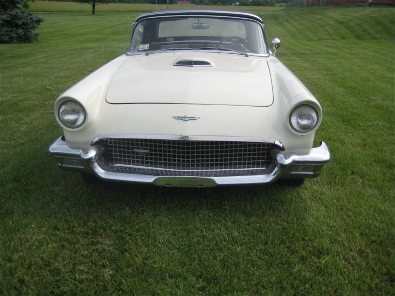 White exterior, black and white interior, and a white hard top. Paint, engine compartment, and interior are fair. The car has an automatic transmission, power steering, and white wall tires.
