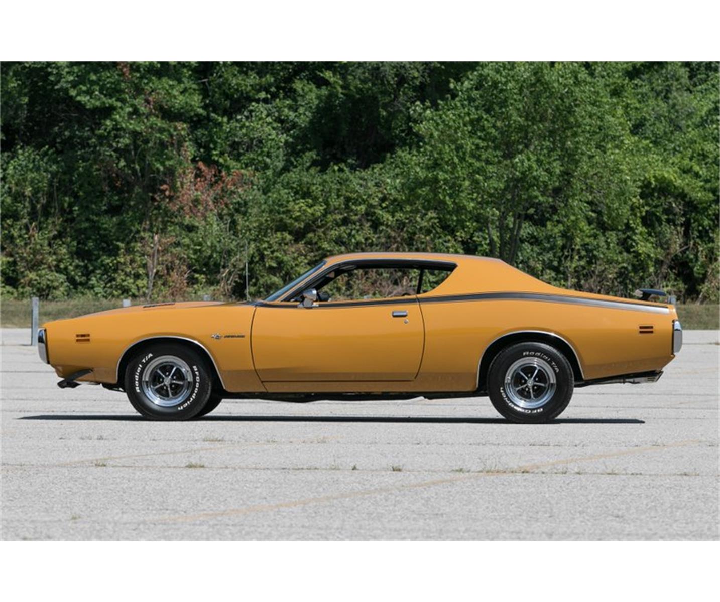 1971 Dodge Charger Super Bee For Sale has a 383c.i. Numbers Matching V8 w/ 4bbl Carb, Numbers Matching 4 Speed Manual Transmission, 8 3/4 Rear End w/ 3.55:1 Posi Ratio, Correct Butterscotch High Impact Exterior, Correct Black Bench Seat Interior, 1 of Only 766 383/4 Speed Super Bee's Produced in '71. Air Grabber Hood, Hood Pins, Front Chin Spoiler, Power Disc Brakes, Power Steering, AM/FM Radio, Dual Chrome Sport Mirrors, Front and Rear Seat Belts, Rally Instruments w/ Tach, Rear Go Spoiler, Blackout Hood Treatment, Stripes, 15" Magnum 500 Wheels w/ BF Goodrich Radial T/A's, Very Rare.