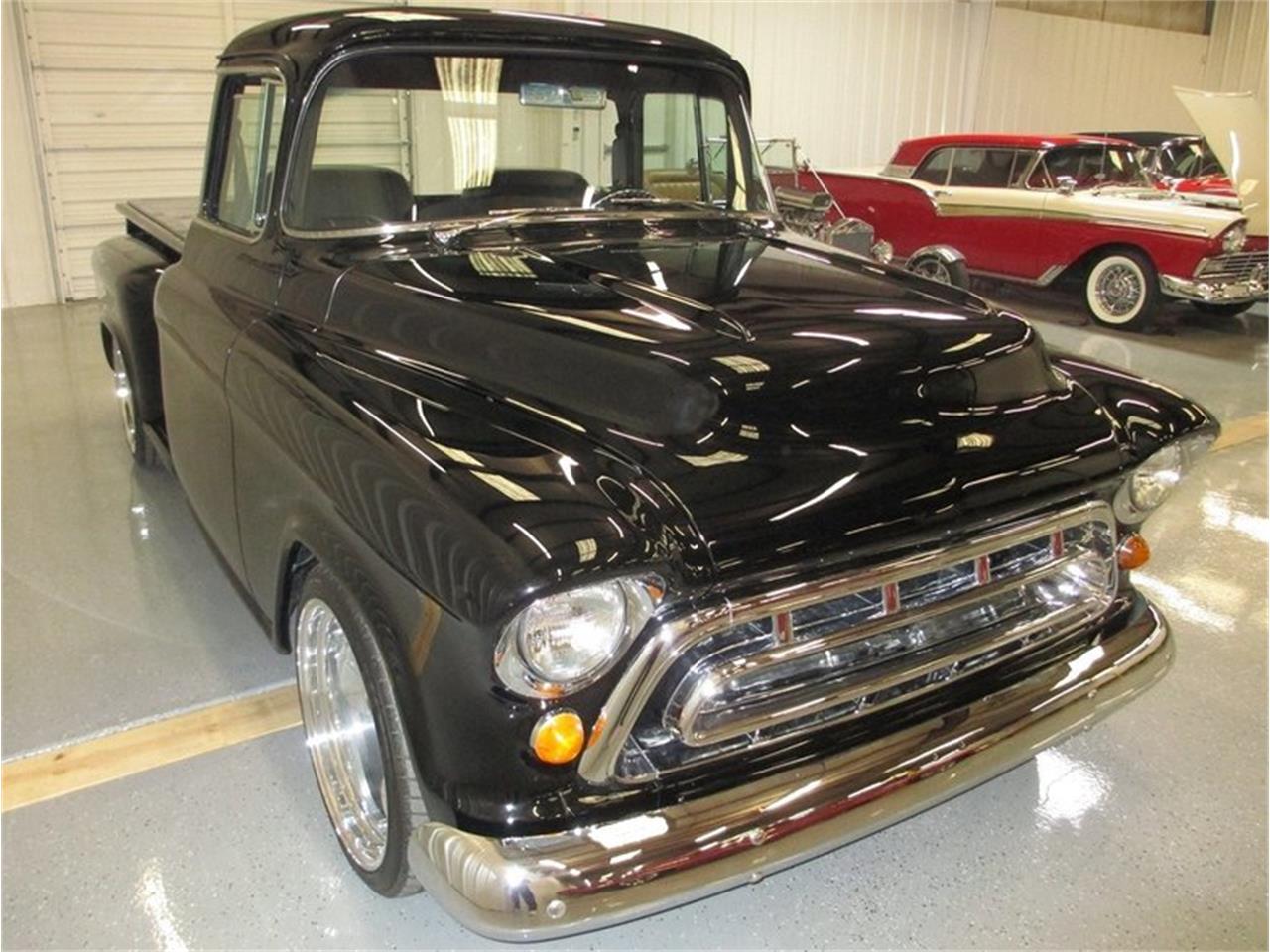 M 5.7L V8 Crate Engine Automatic Transmission Power Rack and Pinion Steering Power 4 Wheel Disc brakes, Power Windows Re Located Fuel Tank, 9 Ford Rear End Coddington 20 Polished Custom Wheels Shaved Door Handles and Side Mirrors Tilt Telescopic Steering Dakota Digital Dash Full Leather Seating with Ostrich Inserts Custom Center Console Alpine Audio System Custom Molded Door Panels and Headliner Billet Steering Wheel and Inside Handles Wood Bed Floor Stunning Raven Black with Black Leather,