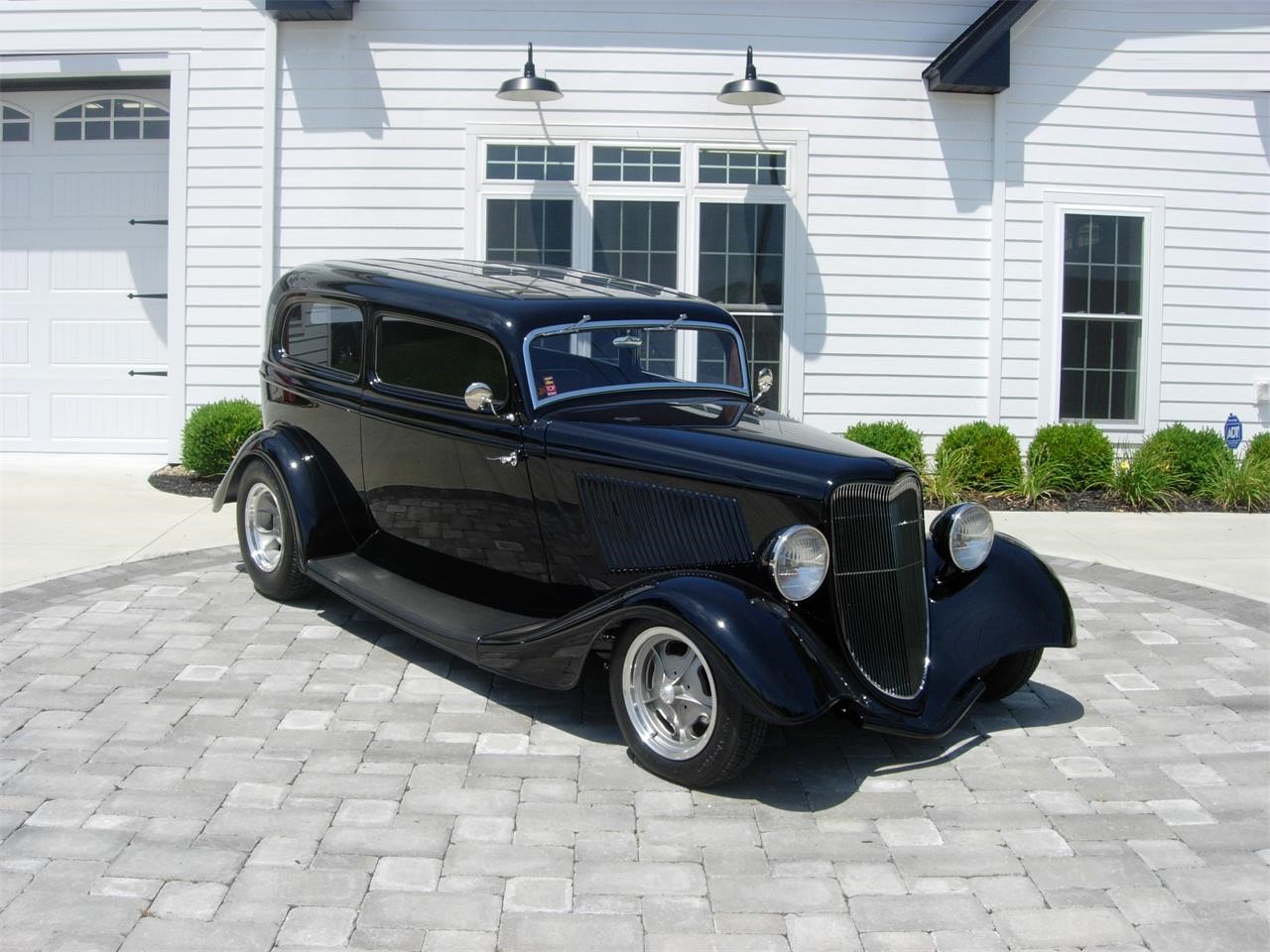 Power is supplied by a ZZ4 crate motor with 3 deuces by Larry Fulton. Trans. 700R4 with Lokar shifter, 4 link coil over 9 inch Ford posi traction rear with 370 gears. Additional features include Rock Valley 14 gallon gas tank, Walker Be Cool radiator and Bob Drake steel rubber coated running boards. Specialty wipers, 33 louvered steel hood side panels. Interior features Flaming River steering column, Banjo steering wheel, OTB Gauge panel, Vintage Air, hidden Alpine remote sound system and power windows front and rear. The just right stance is set off by ET wheels, 15X8 in rear and 15X5 in front.