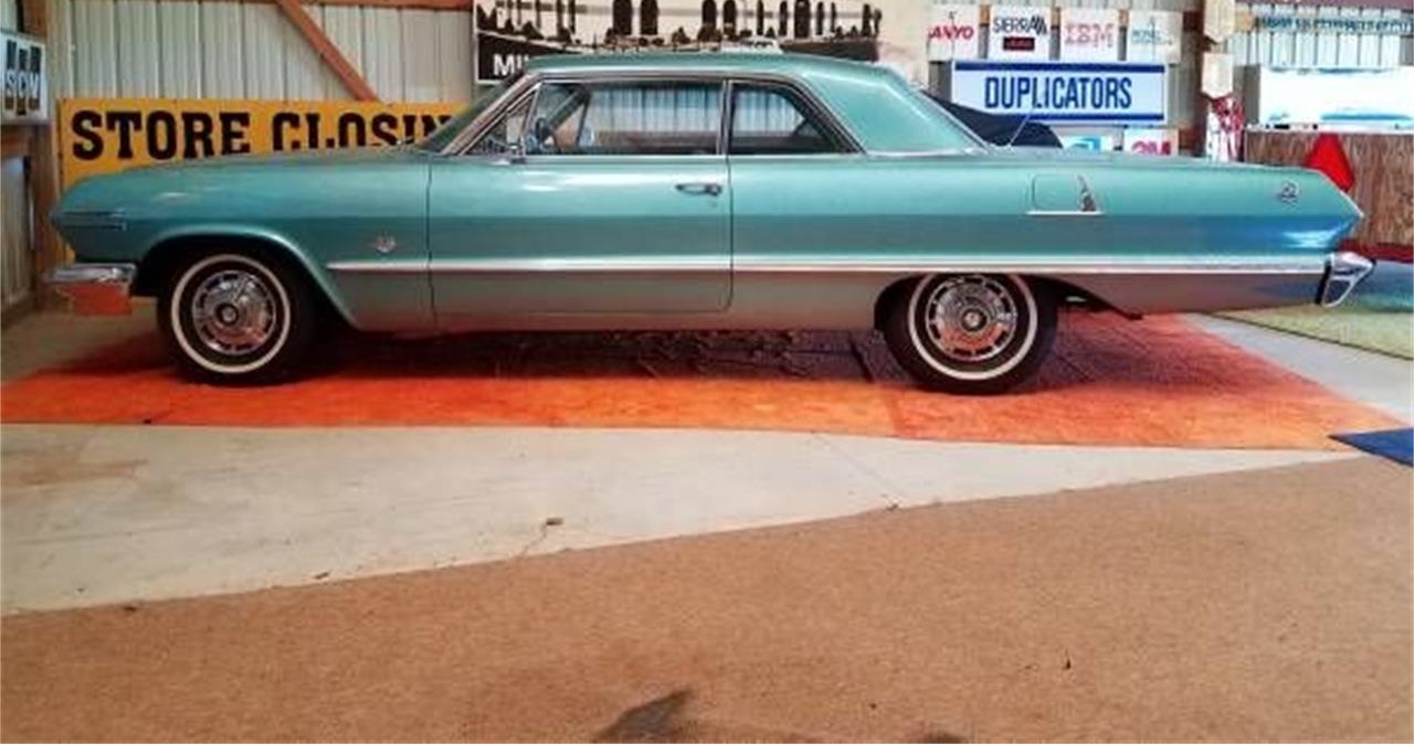 1963 Chevrolet impala super sport, 2 door hardtop. 409 425 hp. 4sp. two four barrel carbs, ps,pb. pos, factory tach. All stock with, this original southern 409 impala ss is an excellent show quality automobile that should hold or increase in value, if properly maintained. The car was appraised, you will find none finer. Color is aqua blue with matching interior.