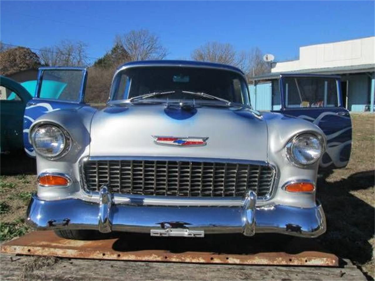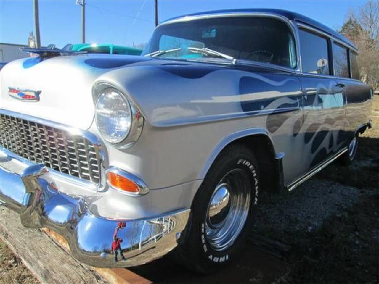 1955 Chevrolet 210 Wagon. Was told they only produce 20,000 of this model and year, Blue metallic paint with gray flames and a ghost of blue.Some paint issues and some minor ware and tear. However overall the paint is fully intact and has a nice shine and no visitable rust.