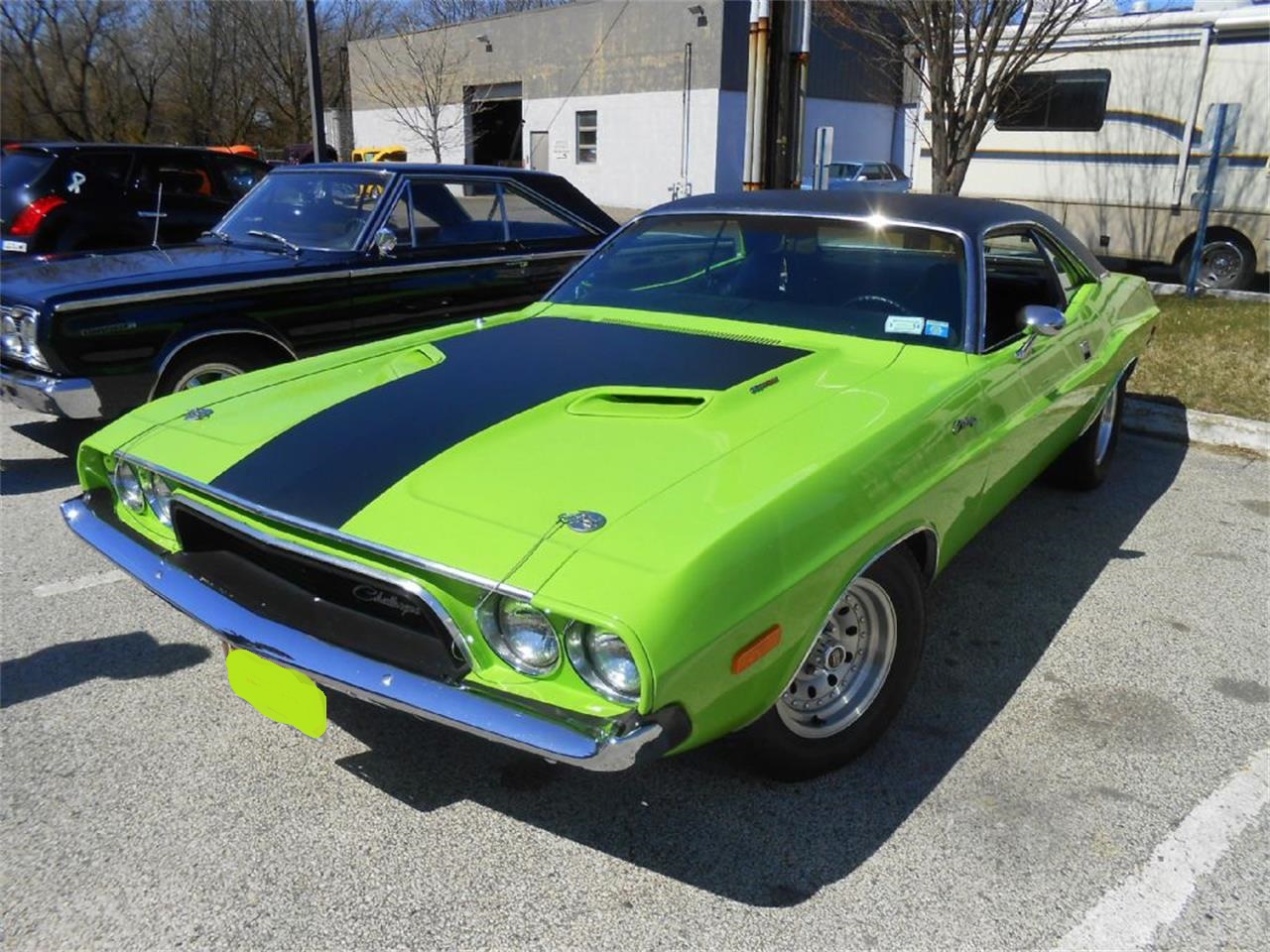 1973 Dodge Challenger 2 Door Hard Top The color is Sublime Green, with a Black Interior, the chrome great very nice car this is a sharp Classic .