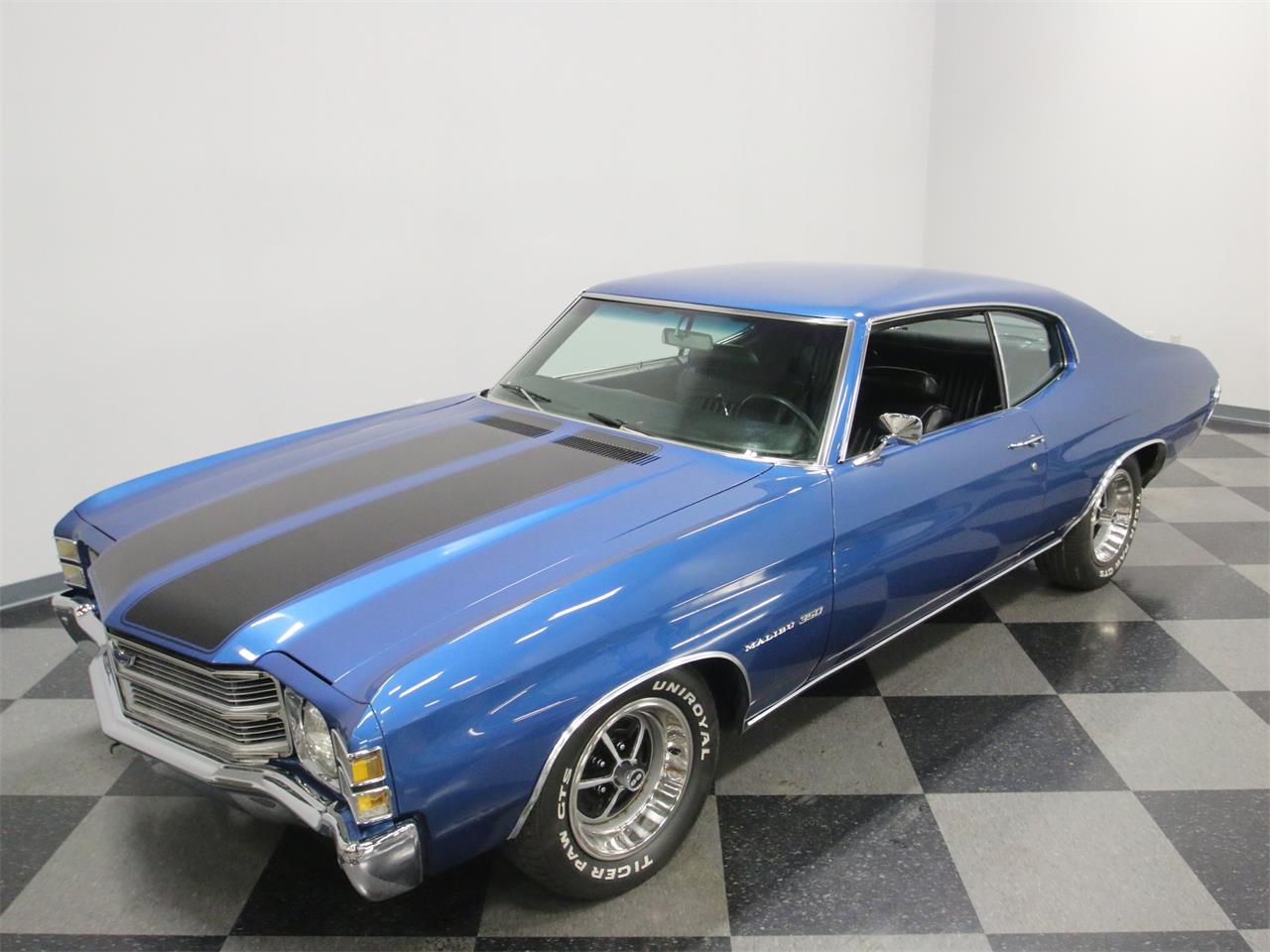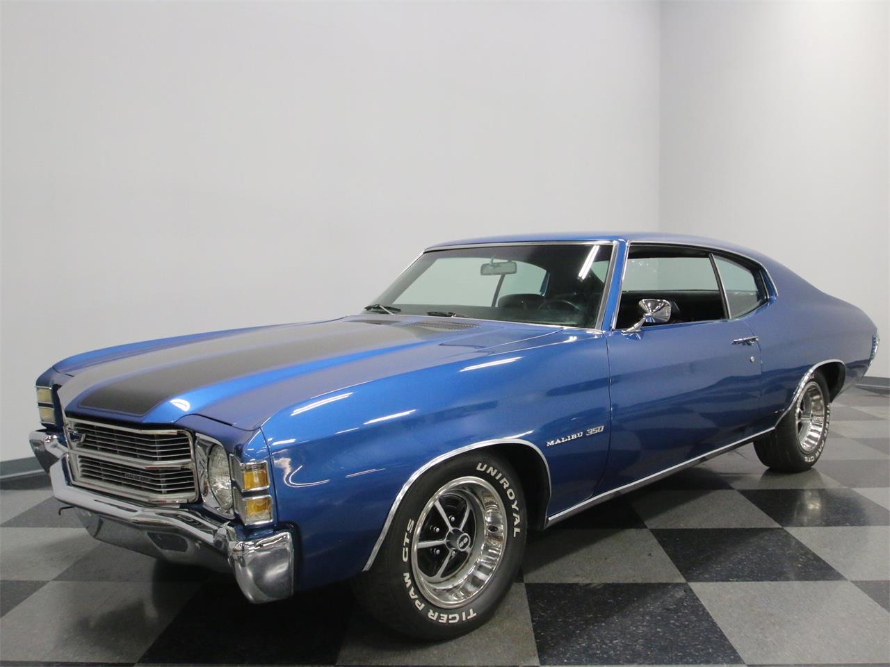 You re looking at a 1971 Chevrolet Chevelle Malibu with bright paint, plenty of great SS upgrades, A C comfort for those hot days, and V8 power. Under the hood is BRAND NEW 350 cubic-inch V8. It was expertly installed, and there is even room left for a little flair if you wish to add some! The V8 inhales deeply thanks to an Edelbrock four-barrel carburetor, and it exhales with authority out of the new dual exhaust. This one feels good out on the road thanks to sway bars both front and rear (this also mean boxed trailing arms.) Plus, there's a TH350 three-speed automatic transmission, power steering, and front disc brakes. The black stripes on the outside are a nice preview of the deep black interior that awaits when you open the door. The condition of the seats, carpeting, headliner, and dash tell a story of thoughtful ownership where anything that wasn't up to standard was replaced. And to make this an even better place to spend some time there are features like an upgraded stereo, new gauges, and modern R134a air conditioning. It means you get to roll down all the windows on this pillarless hardtop and always remain as cool as you look.