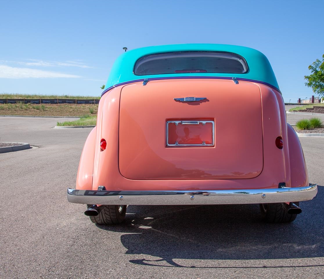 This one has a lot of the creature comfort amenities such as: 350 Chevy engine, mated to a 3 speed transmission putting power to a 10 bolt rear end sporting 3.55 gear ratio. Camaro Front Clip. 18" Intro Wheels in front, 20" Intro Wheels in the rear.