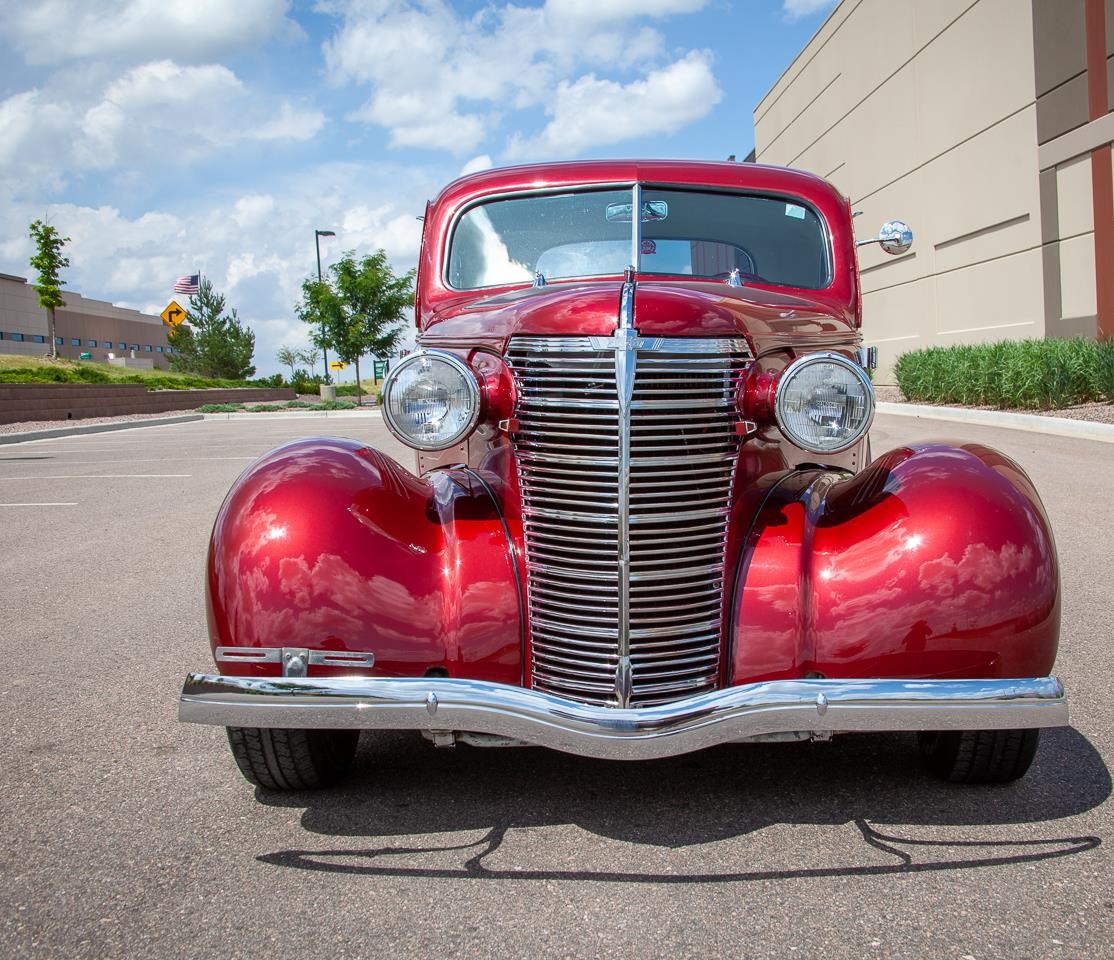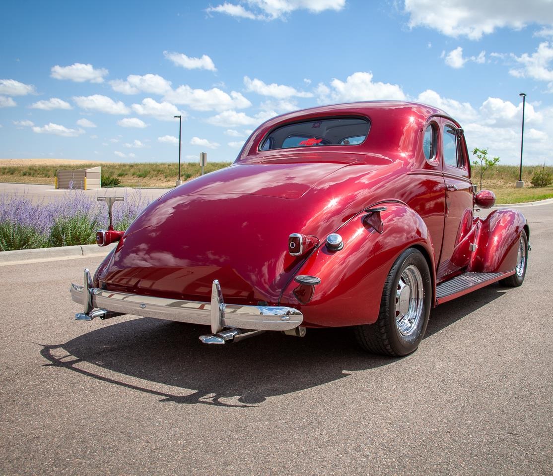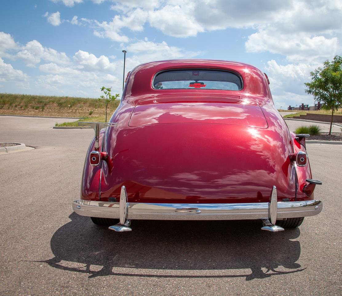 Red with White Interior Two Door Coupe has a Chevrolet 350 C.I. Engine with a floor shifted Automatic transmission. Power Steering. Power Disc Brakes. Heater, A/C. Custom tilt Steering wheel. Custom Brass hand built Radiator included (Not installed). Custom Cragar Wheels with Good Year radial tires.
