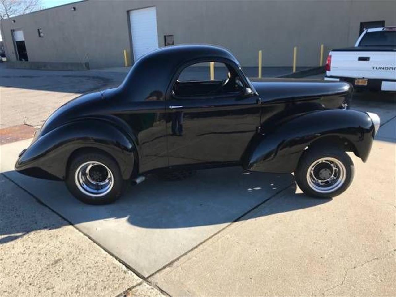 1941 Willy's Car has pretty nice black paint and a nice recently done interior, trunk, nice headliner, etc. It has a straight front axle with a rare Franklin racing rear end, wilwood front disc brakes, a well built 355 chevy engine with a 350 turbo transmission. It has a new edelbrock carburetor and it runs and drives well! Underneath is very clean as well.