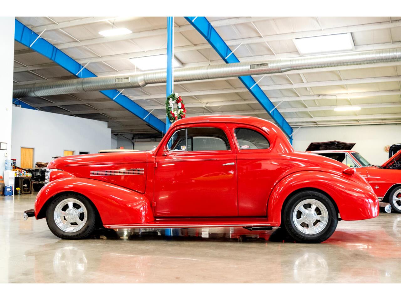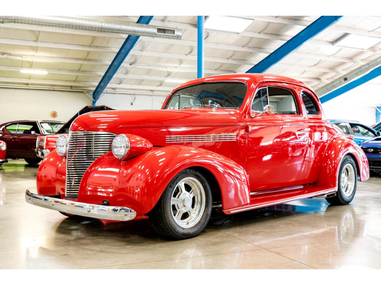 Check out this Amazing 39 Master Deluxe coupe! This is a real 39 Chevy with steel body (glass fenders and trunk lid) finished in a gorgeous victory red paint.