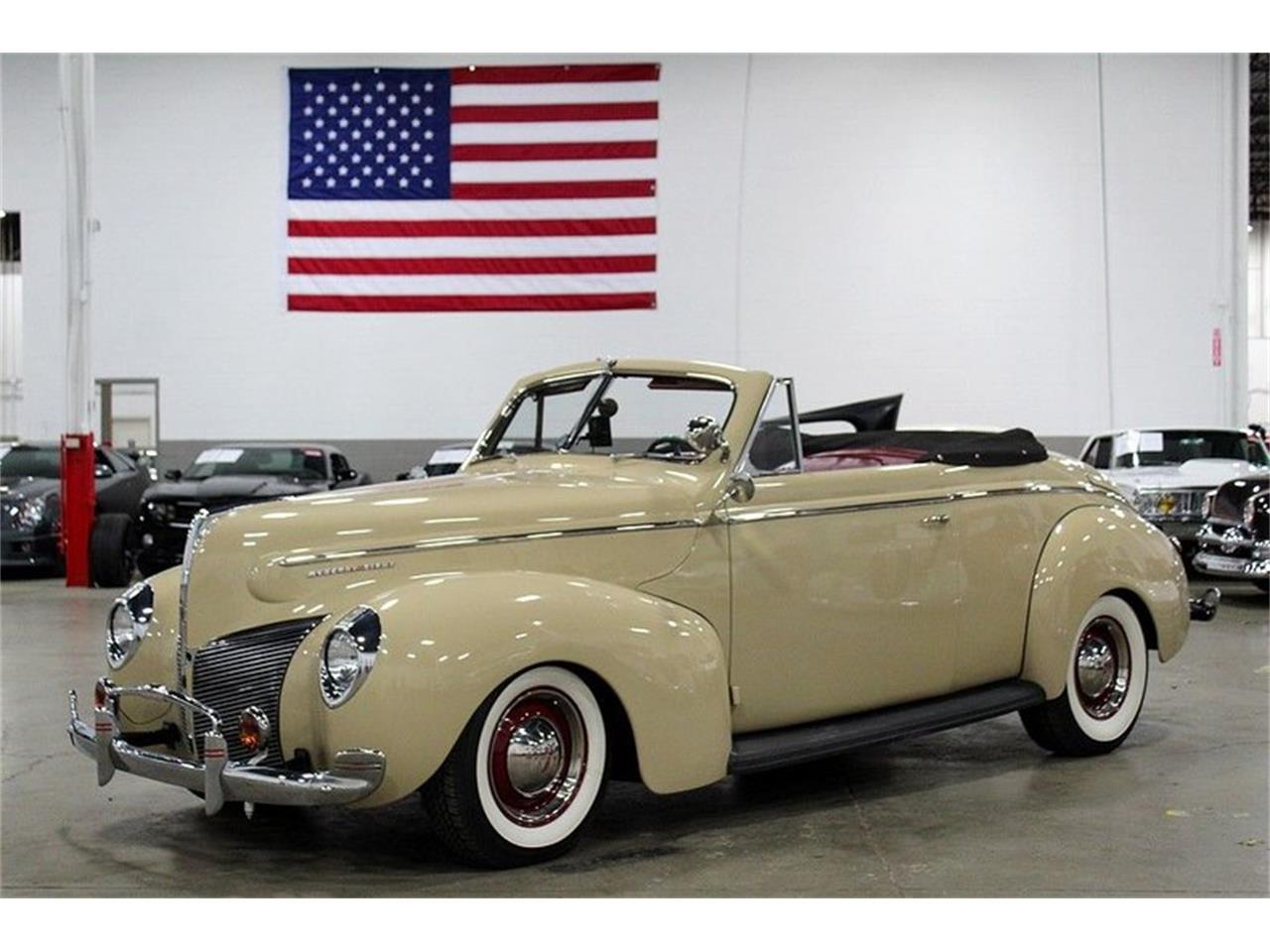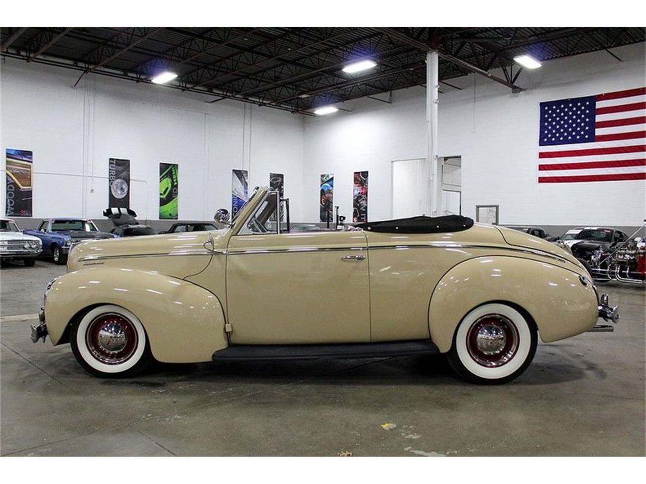 1940 Mercury Eight Convertible. This stunning vehicle comes in an immaculate tan paint job complemented by a spotless red interior and a clean brown convertible top. The convertible top is in exceptional condition and functions as it should. Powering this stunning classic is a 239 cubic inch V8 motor mated to 3 speed manual transmission with a Columbia 2 speed rear end with overdrive. Upgrades to the 239 include a 12v conversion, electronic ignition, Fenton headers, full stainless steel exhaust and more. Other upgrades include a back-up camera, tachometer, voltage gauge, vacuum gauge, turn signals, tube shocks, front sway bars and more.