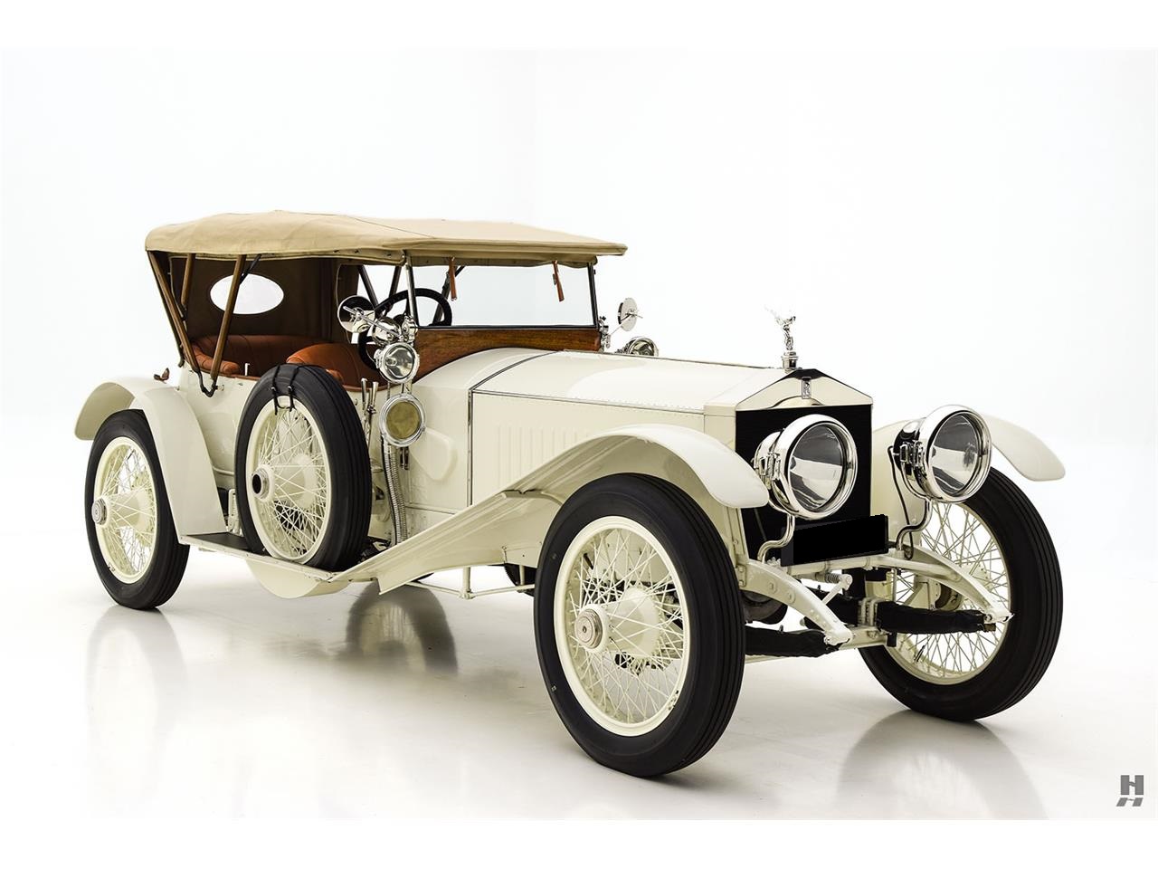 1913 40/50hp Silver Ghost, chassis number 2371. It is currently presented in white with tan leather upholstery and beautiful nickel plated fittings and it has a delightfully low-slung and sporty appearance, particularly riding on the correct spec Rudge Whitworth wire wheels.
