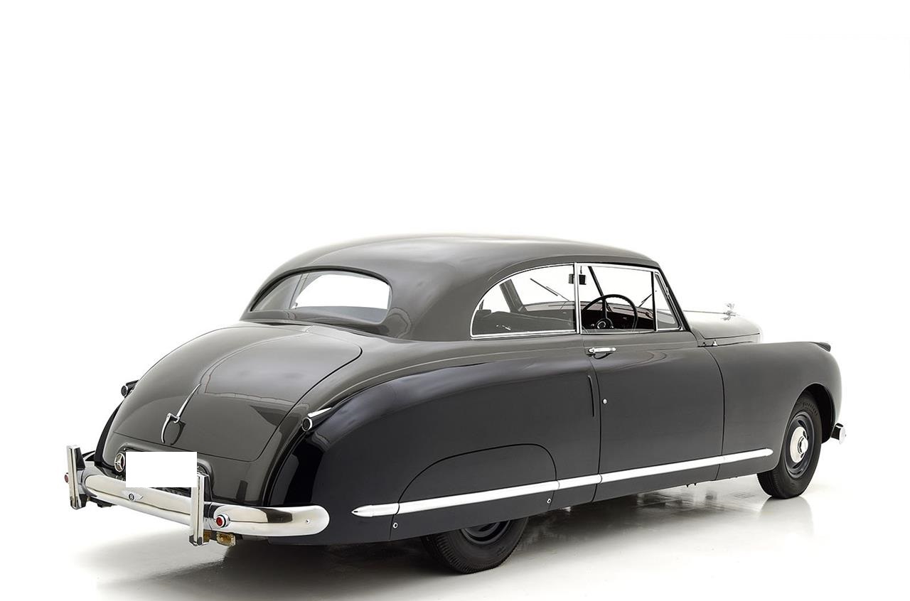 This new model marked a significant milestone in the history of both of these great British marques. The Bentley Mark VI, (joined by the Rolls Royce Silver Dawn in 1949) was the company's first postwar production car and the very first model offered with a complete all-steel production body, known rather unglamorously as the Standard Steel Saloon. Pressed Steel Ltd produced the panels, and the cars were assembled at the newly integrated Rolls-Royce works in Crewe. Mechanically, it was similar to the aborted pre-war Mark V, with independent front suspension on a sturdy chassis and a 4.25 liter inline six. The Standard Steel Saloon offered traditional styling and classic wood and leather interior appointments. It was attractive, understated, and elegant, yet hardly groundbreaking or advanced.